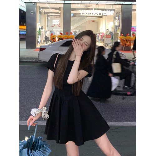 | nameOriginal | Women's Temperament Short Sleeve Summer French Waist Little Black Dress |