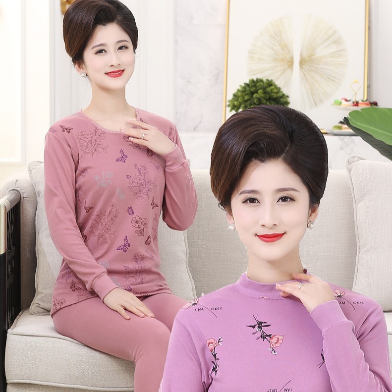 | nameOriginal | Women's Thermal Underwear Extra Large Mother's Cotton Autumn Clothes Autumn Trousers Middle-aged and Elderly Women's Mid-high Collar Cotton Sweater Set |