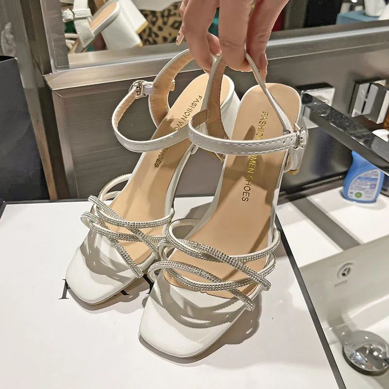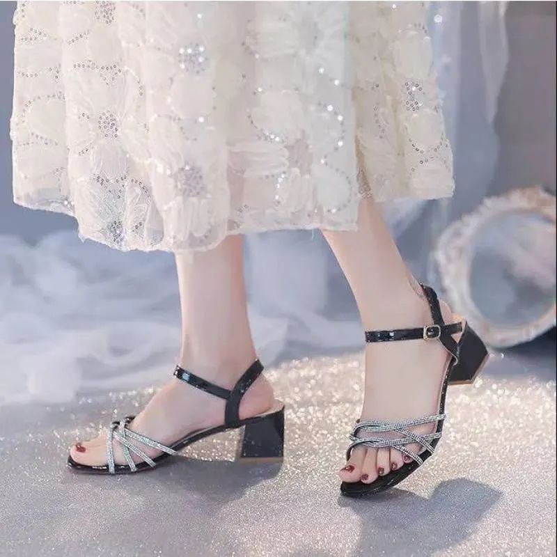 | nameOriginal | Women's Thick-heeled Sandals for Summer 2024 New All-match Fairy Style Rhinestone Style with Mid-heeled Skirt High-heeled Sandals |
