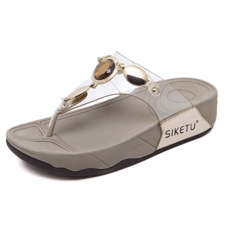 | nameOriginal | Women's thick-soled summer fashion mid-heel Korean style rhinestone slippers |
