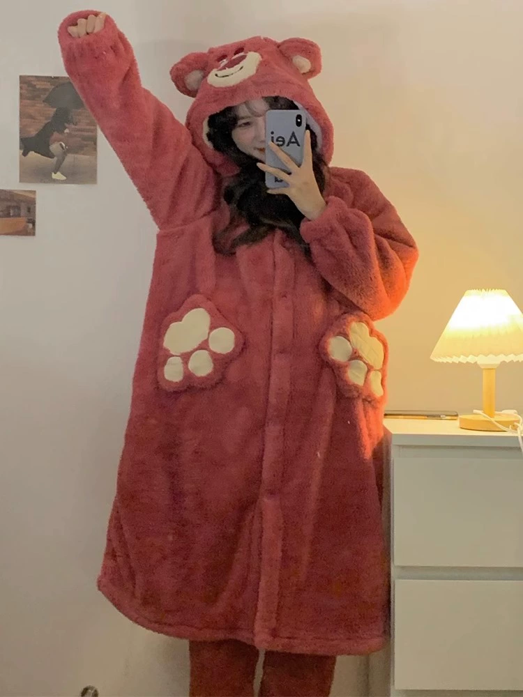 | nameOriginal | Women's thick winter long flannel bathrobe pajamas |