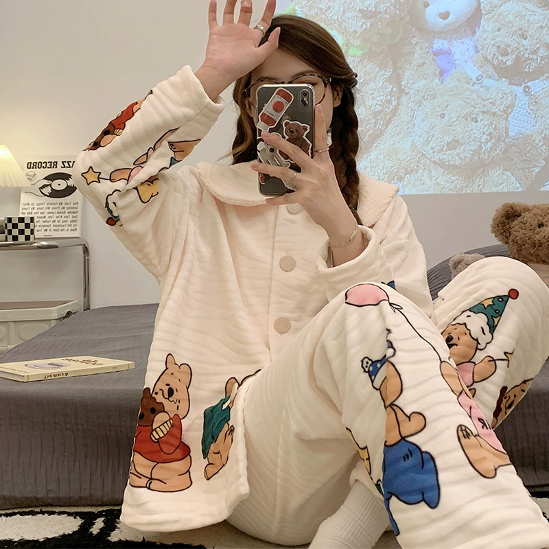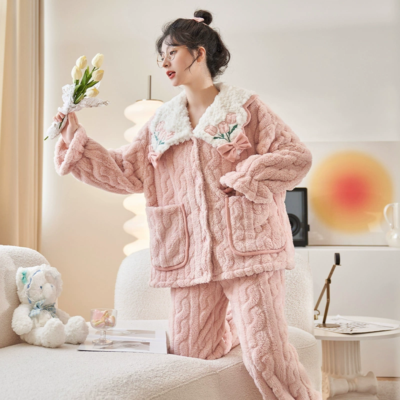 Women’s thickened flannel long sleeve autumn and winter pajamas