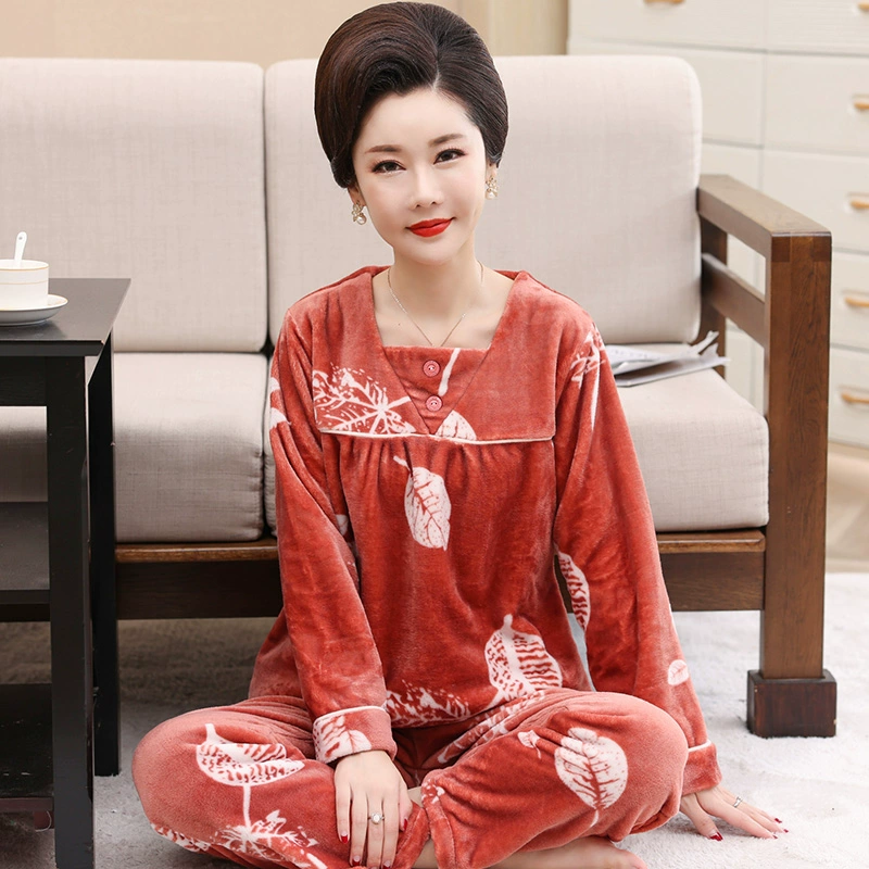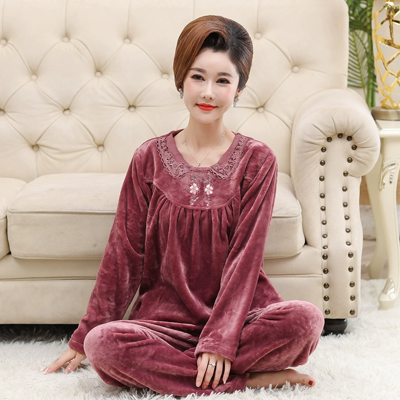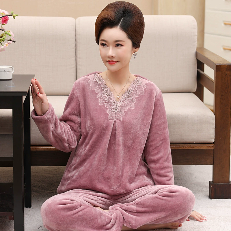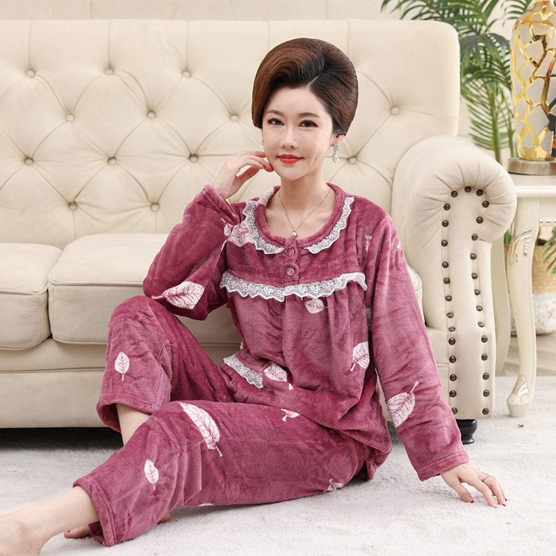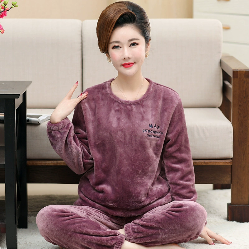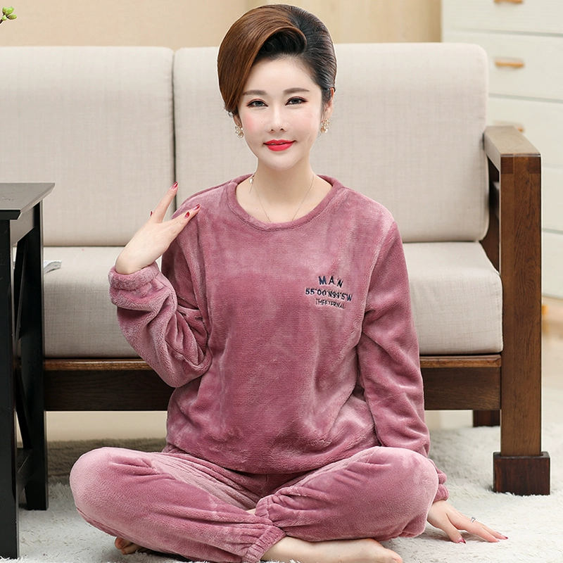 | nameOriginal | Women's thickened round neck middle-aged mother's flannel pajamas |