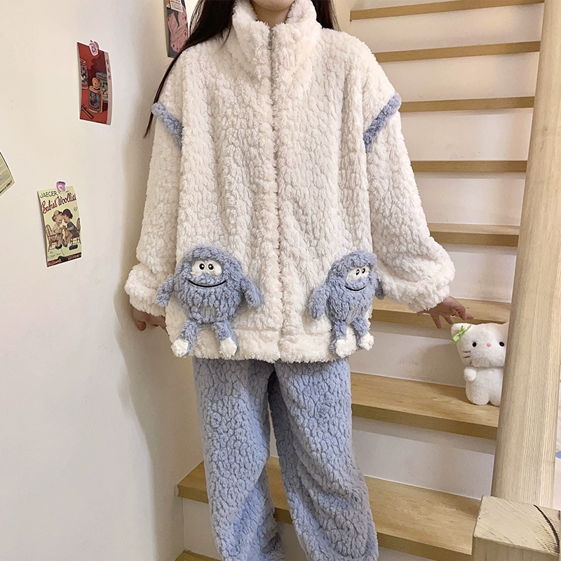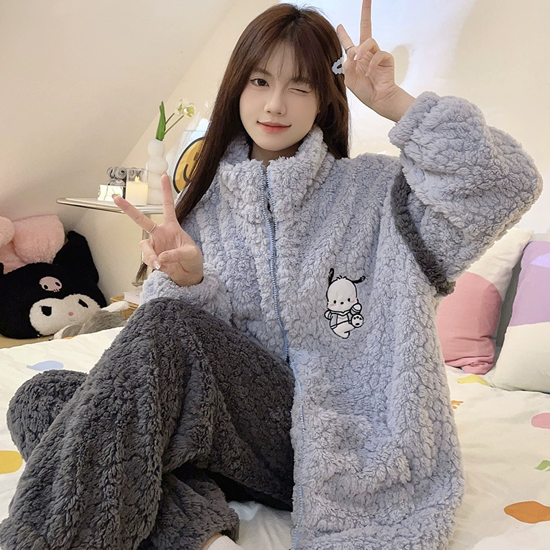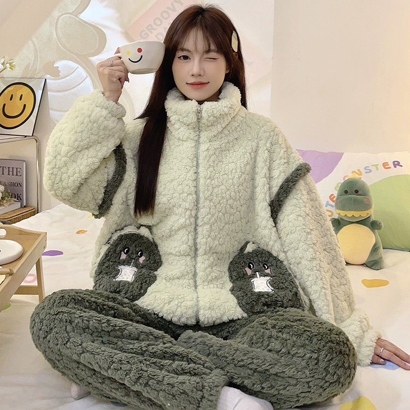 | nameOriginal | Women's Thickened Zipper Cartoon Flannel Winter Pajamas |