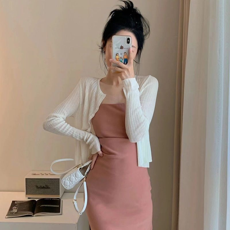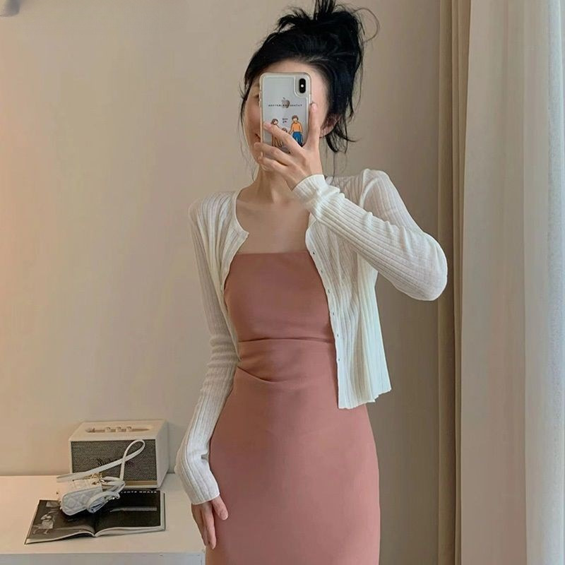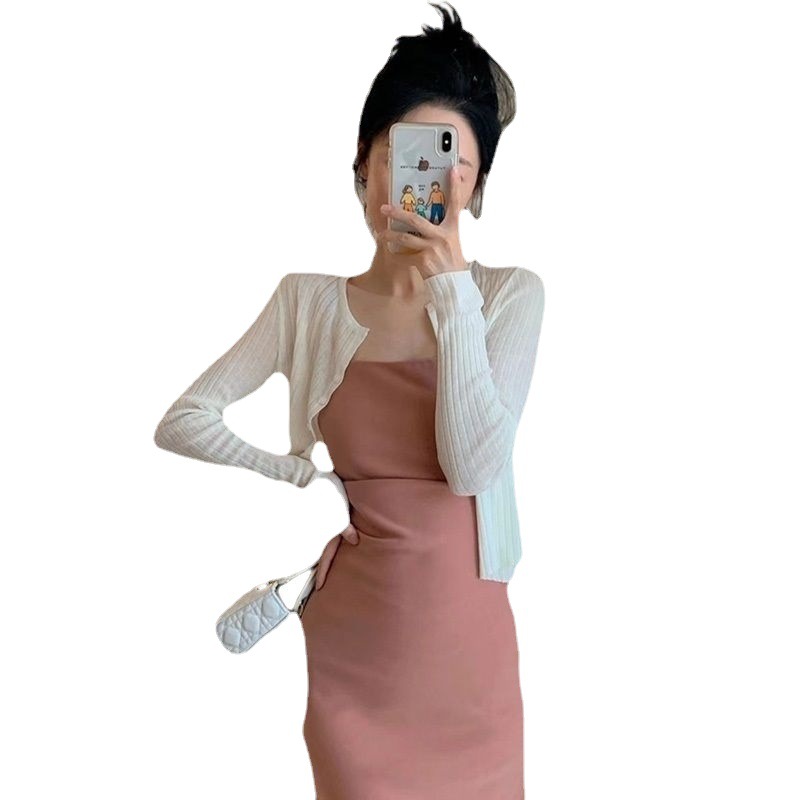 | nameOriginal | Women's Thin Ice Silk Sunscreen Sweater with Small Shawl Blouse Skirt with Sling and Knitted Cardigan |