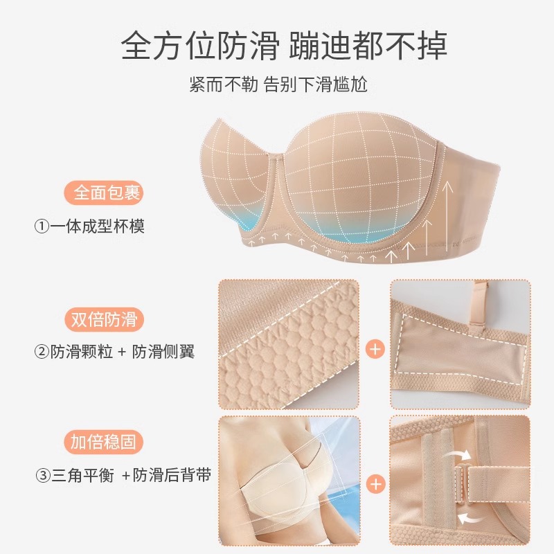 Women’s Thin Non-slip Push-up Strapless Underwear for Women’s Large and Small Anti-sagging plus size Bra