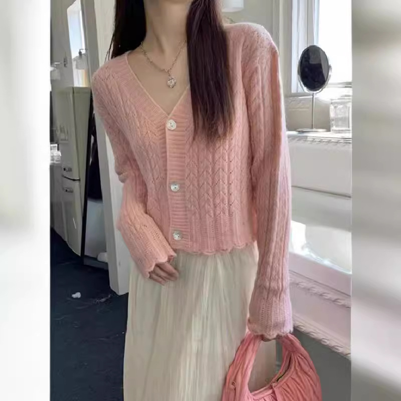 | nameOriginal | Women's Thin Outer Cardigan Summer 2024 New Long-sleeved V-neck Top Sunscreen Short Knitted Early Autumn Jacket Ins |