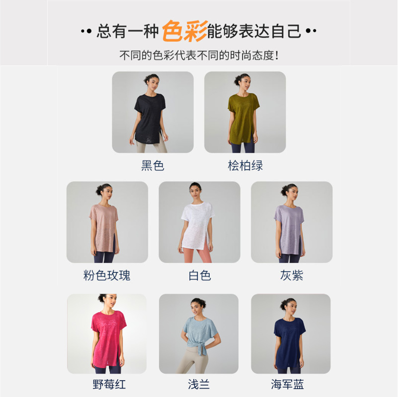 | nameOriginal | Women's Thin Yoga Blouse Spring and Summer One-sided Split Short-sleeved Sports Top Loose Quick-drying Running Fitness Wear |
