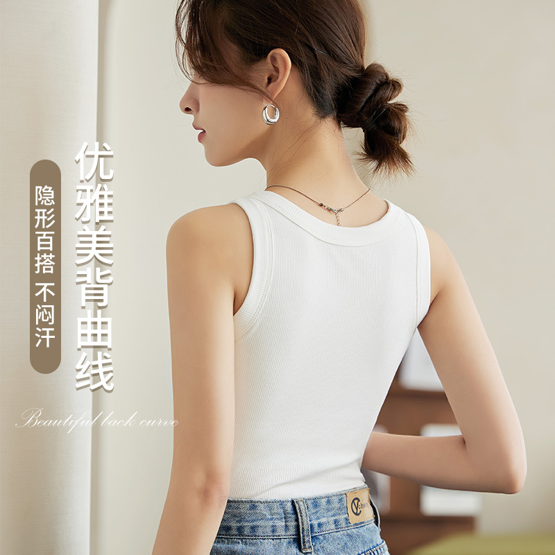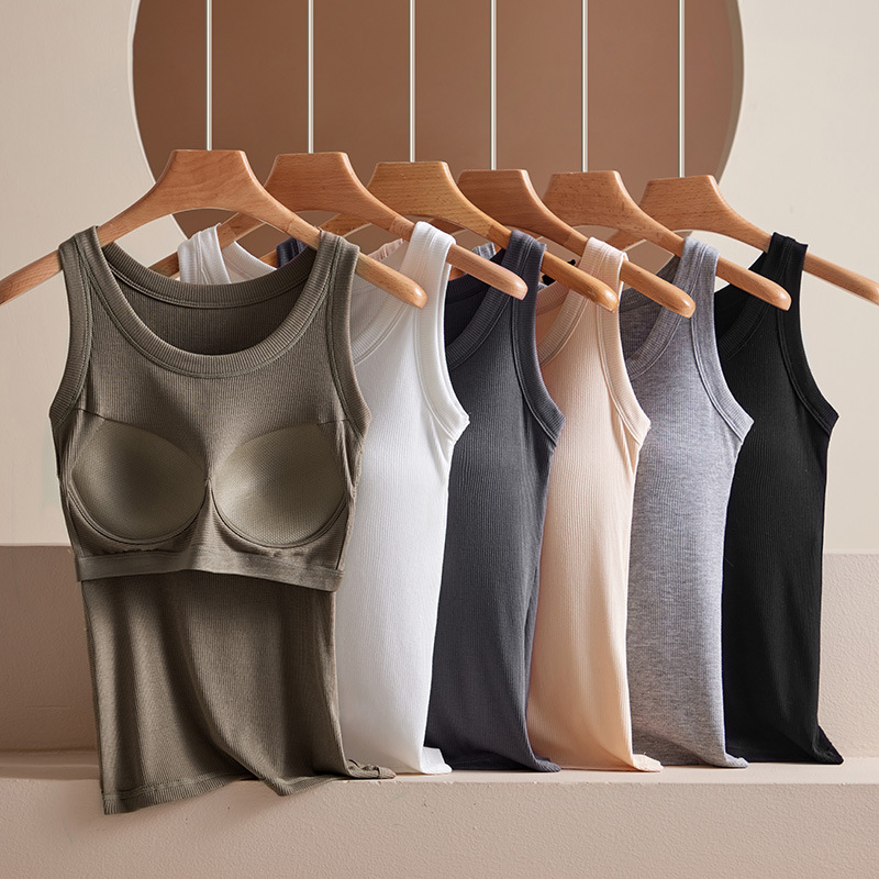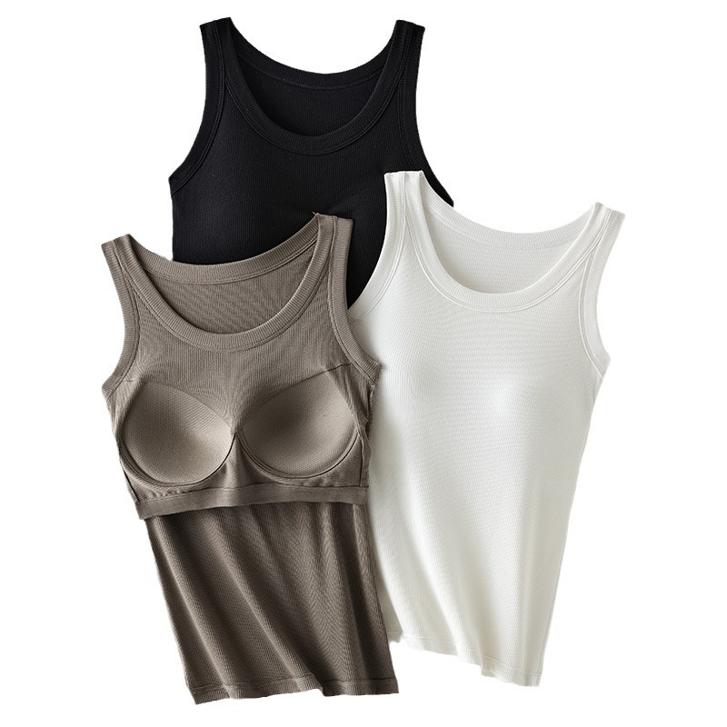 | nameOriginal | Women's threaded cotton all-match vest with chest pad one-piece fixed Cup wear-free bra wide shoulder U-neck bottoming vest |