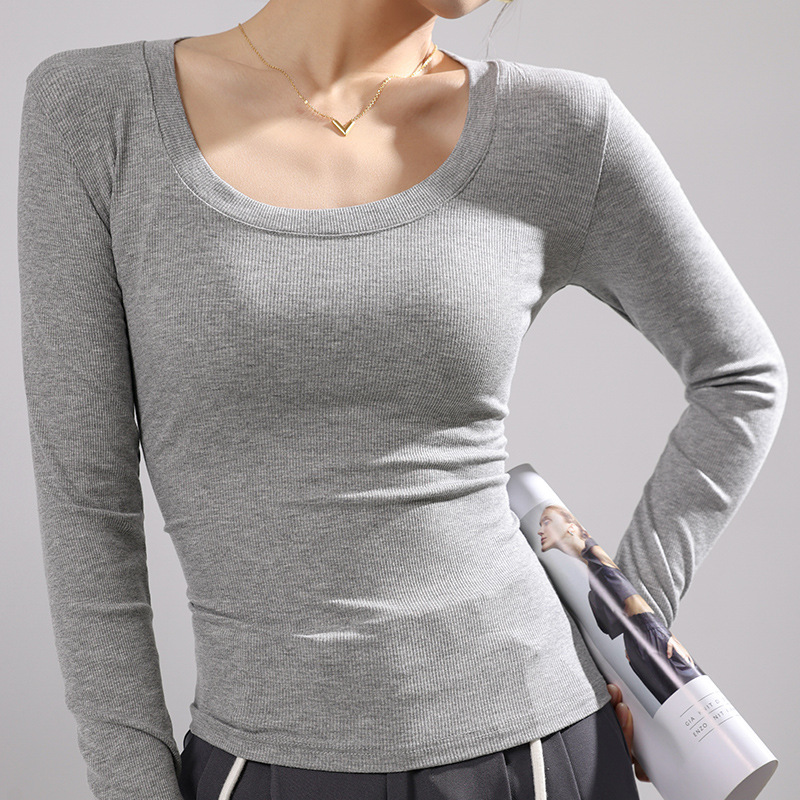 | nameOriginal | Women's threaded round neck bottoming shirt 2024 Spring and Autumn new solid color basic bottoming slim-fit long-sleeved top |