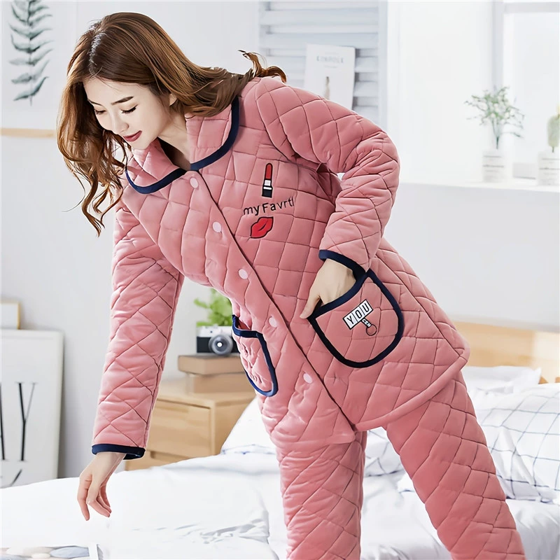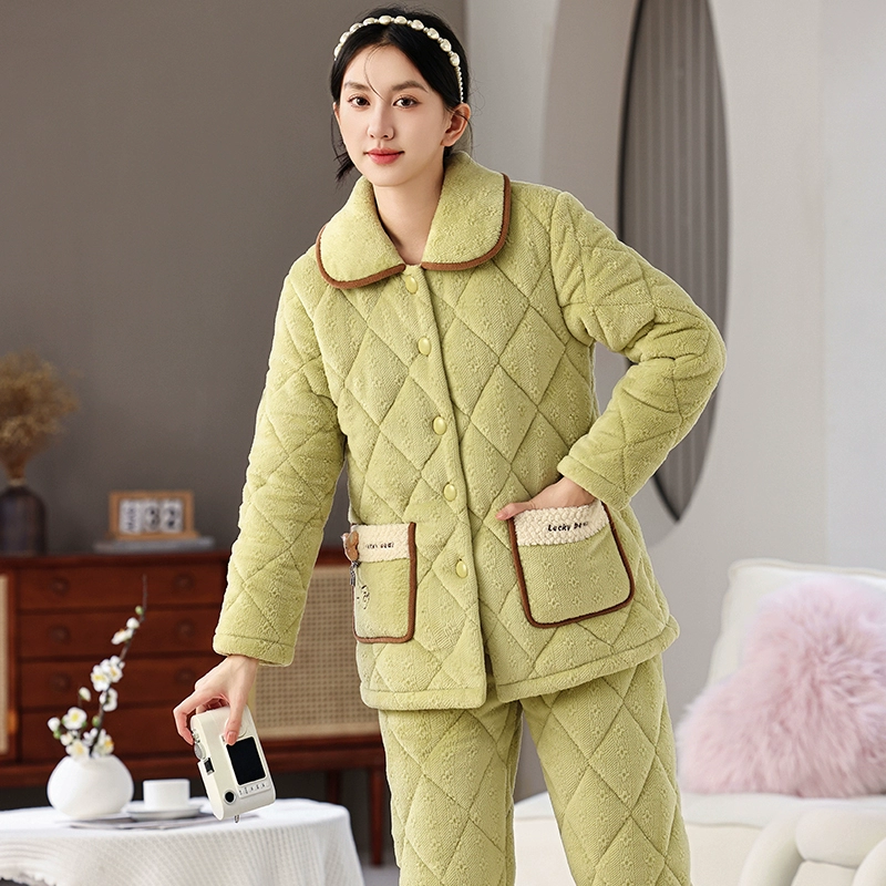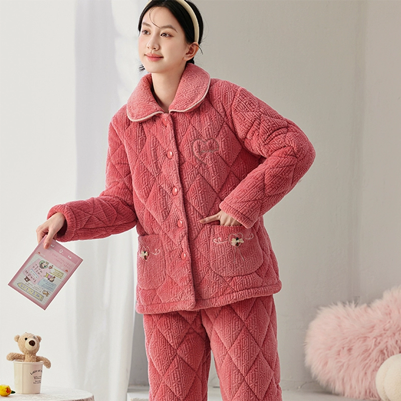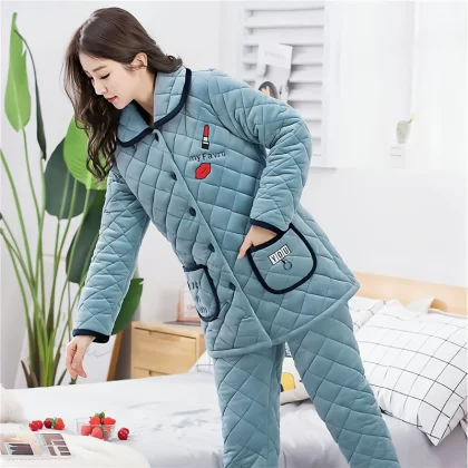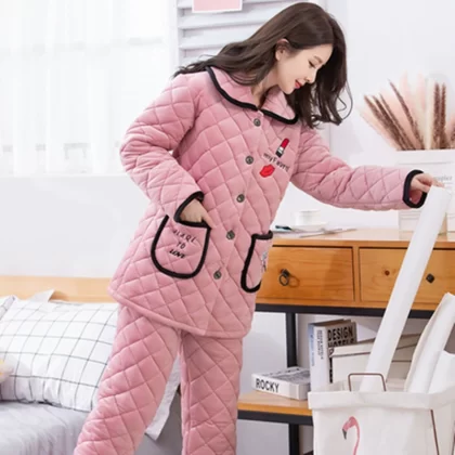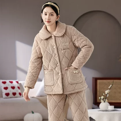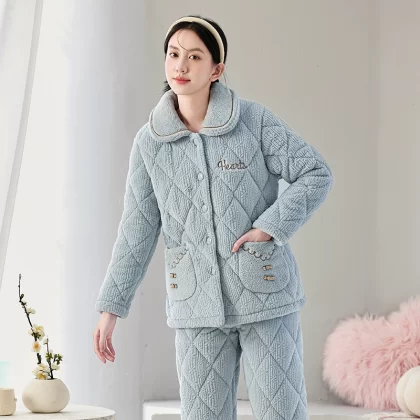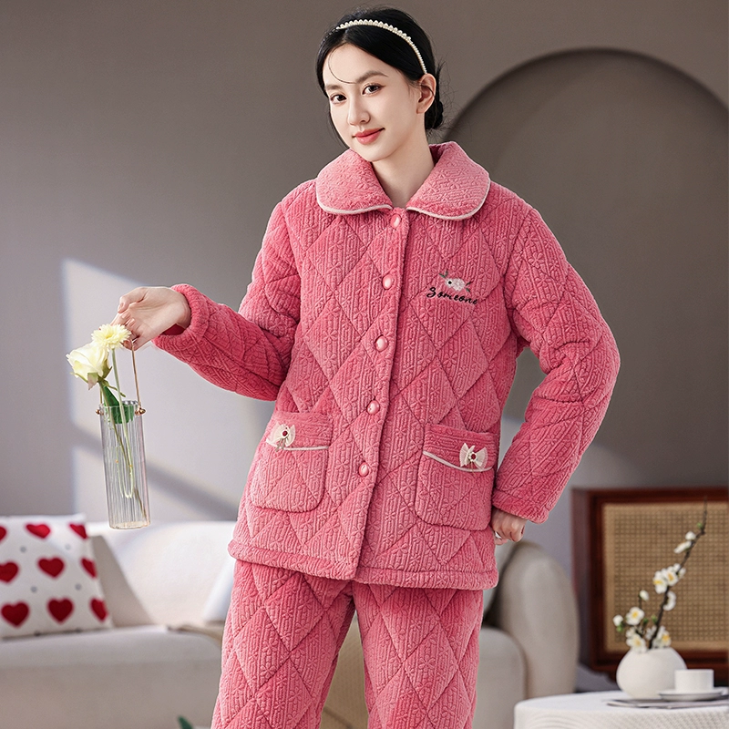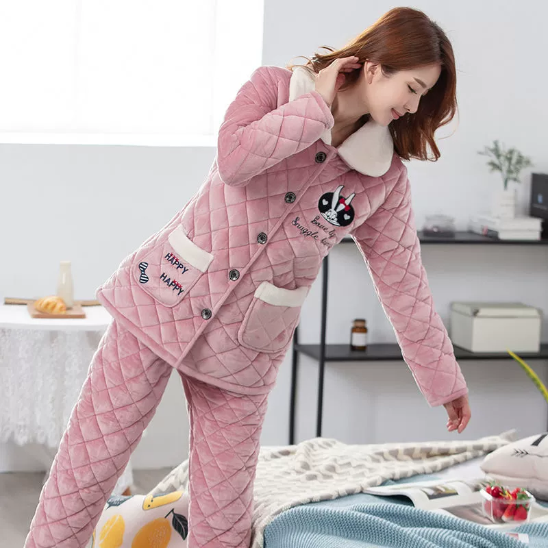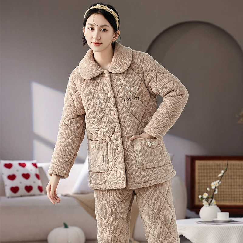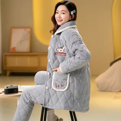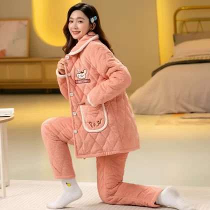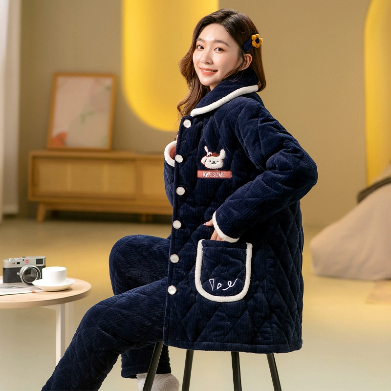 | nameOriginal | Women's three-layer fleece quilted warm long outer pajamas |