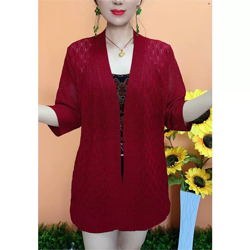 | nameOriginal | Women's three-quarter sleeve knitted cardigan summer mid-length mother's wear |