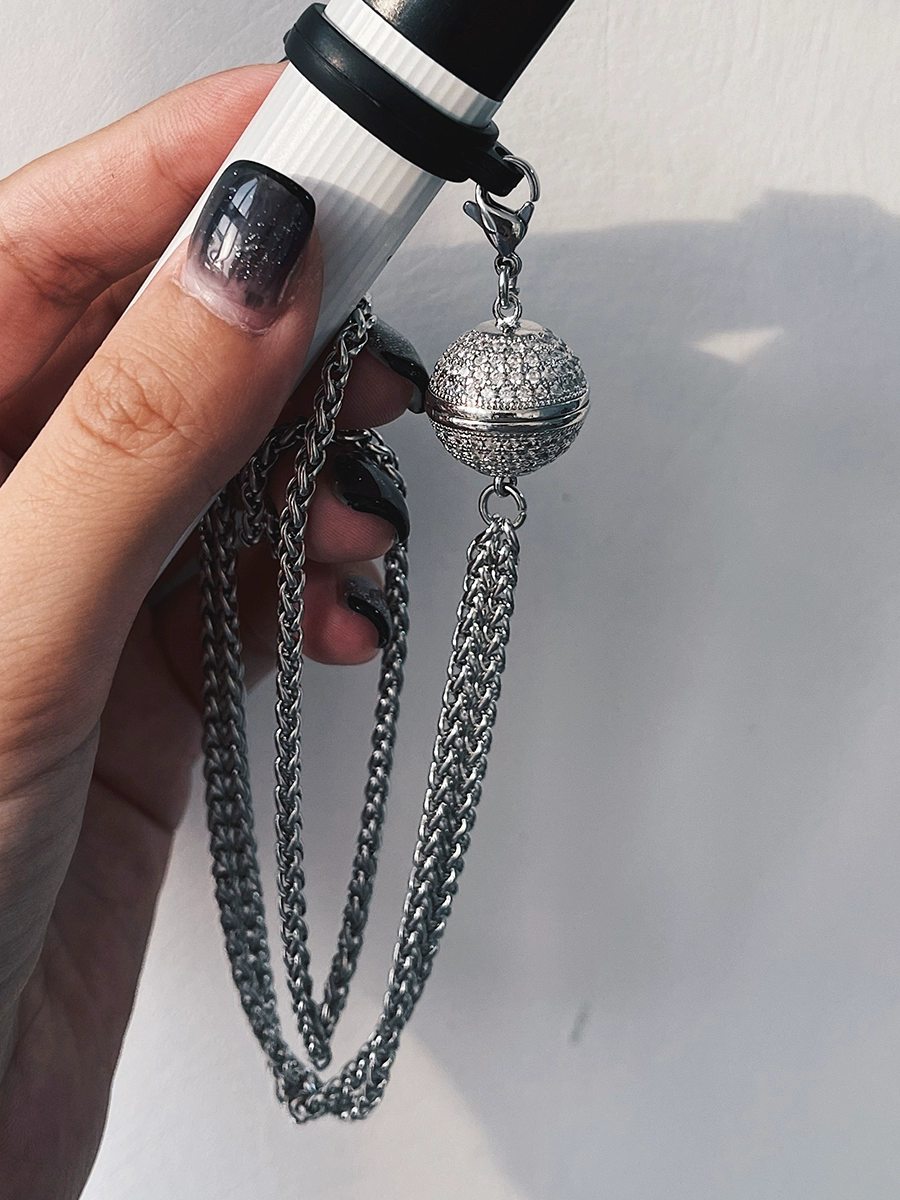 Women’s titanium steel non-fading sparkling diamond ball pendant chain