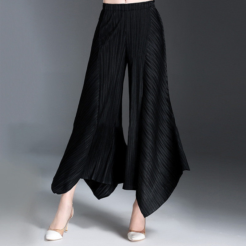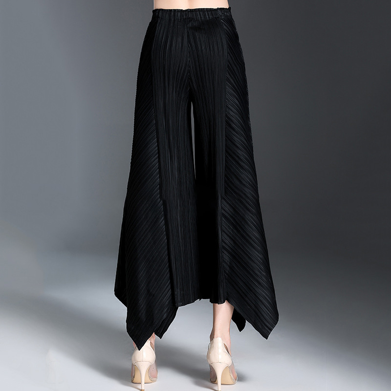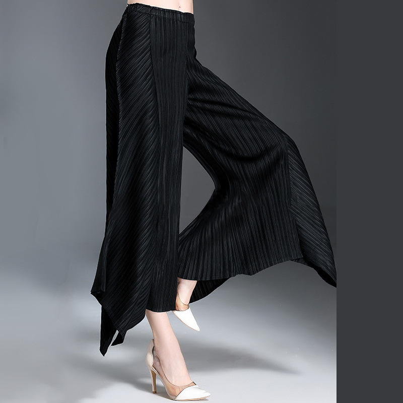 Women's trousers Sanzhai irregular wide-leg pants summer wear European and American vertical pleated drape slimming pleated casual flared pants