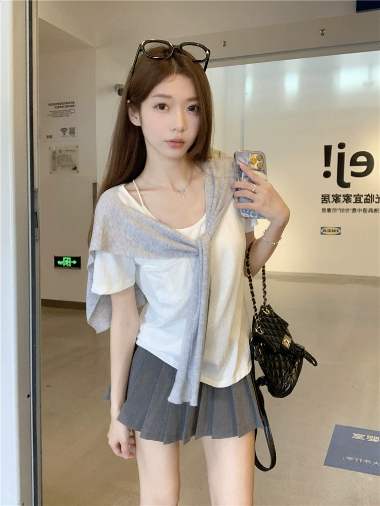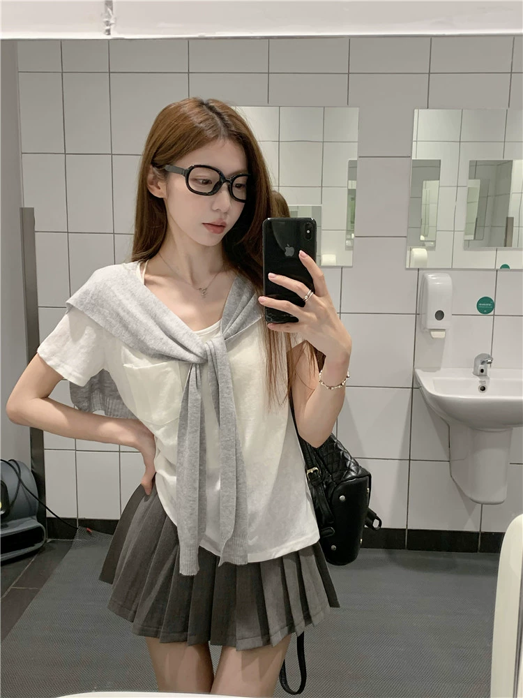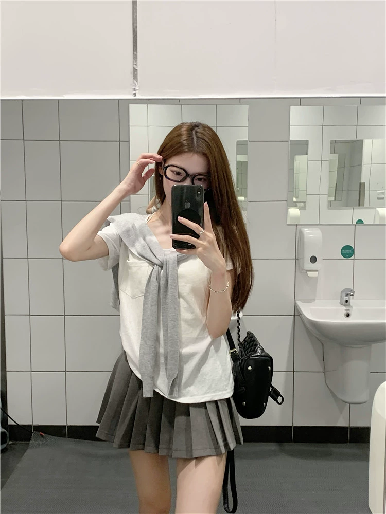 | nameOriginal | Women's u-neck pocket summer loose right shoulder short-sleeved T-shirt |