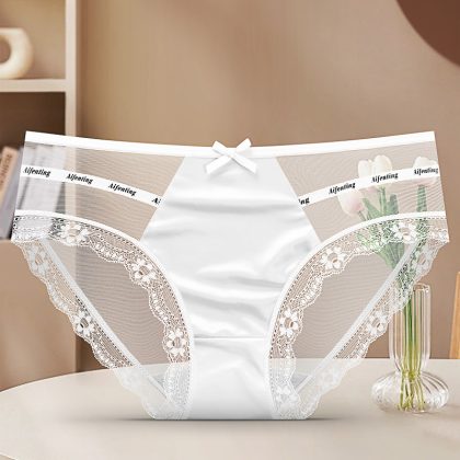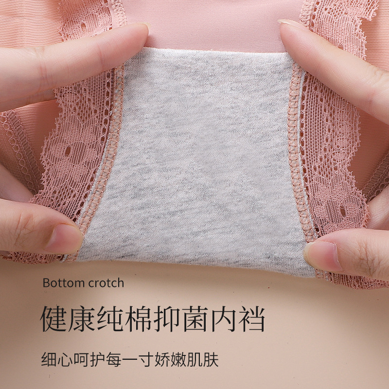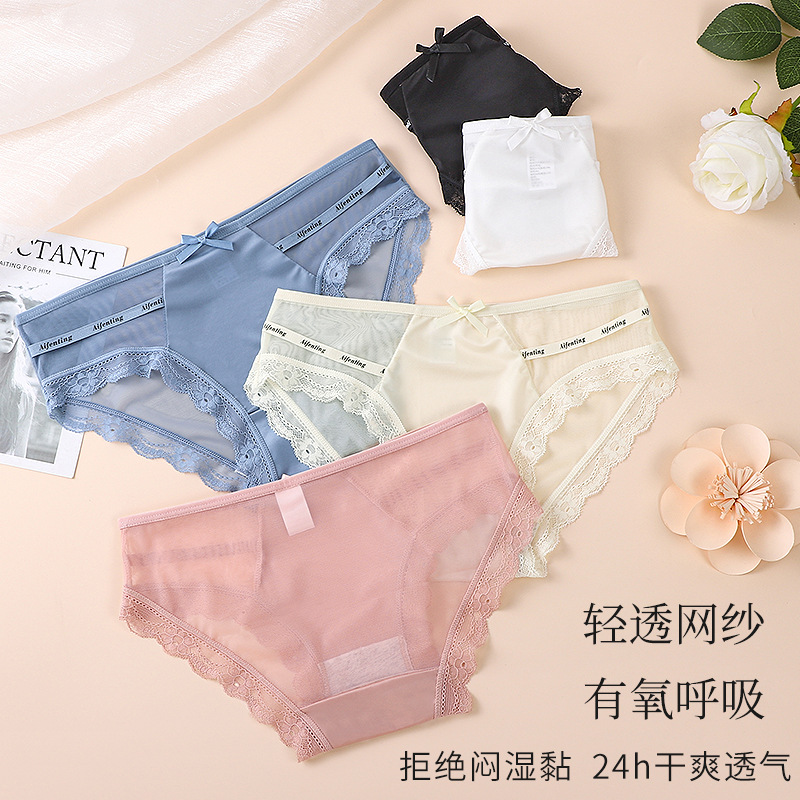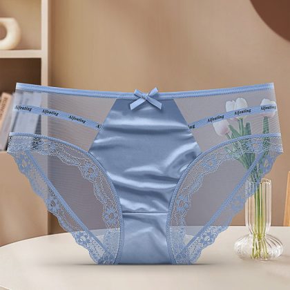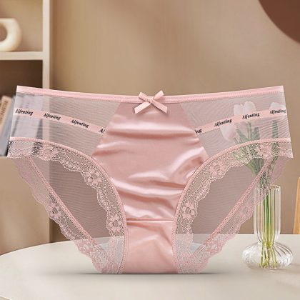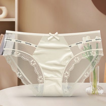 Women’s underwear lace sexy mesh light skin-friendly pure Want to splice satin silky cotton crotch women’s briefs