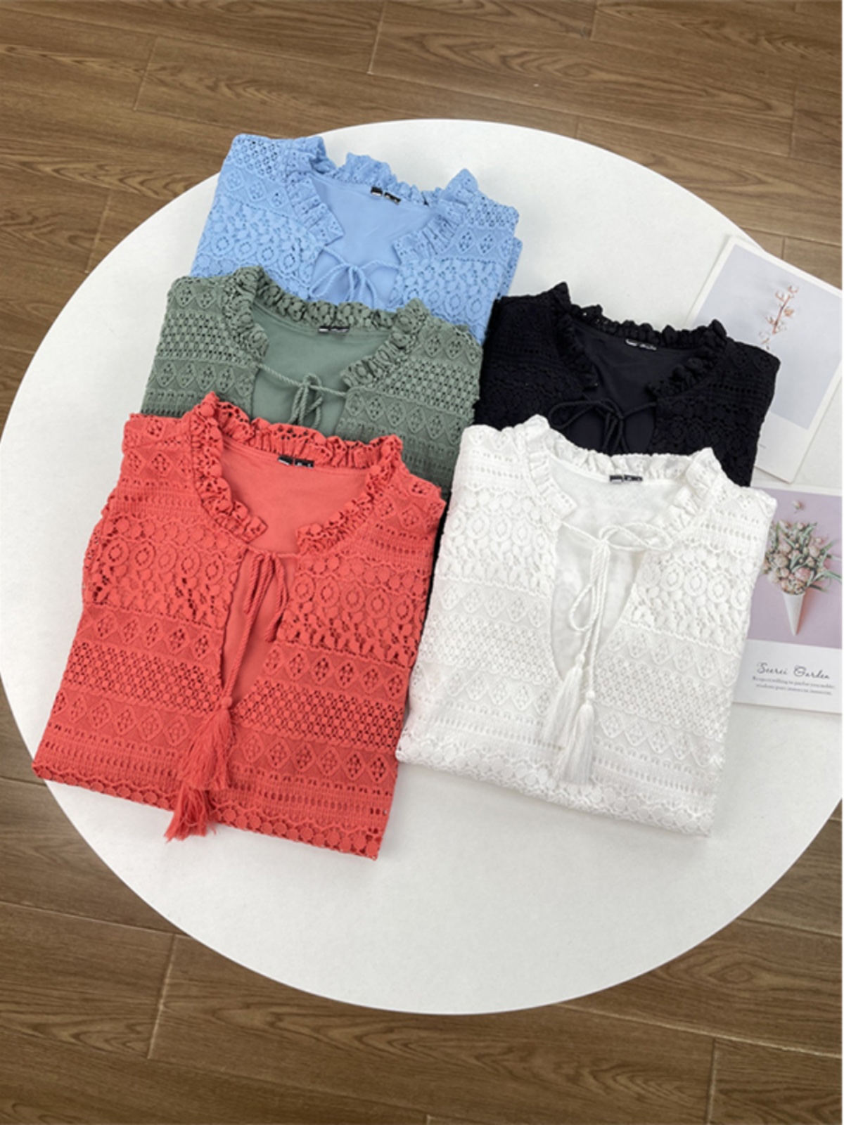 | nameOriginal | Women's V-neck lace-up puff sleeve pullover shirt |