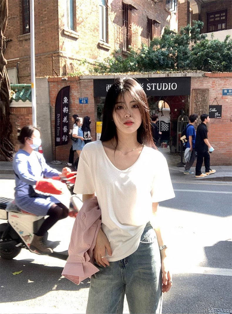 | nameOriginal | Women's v-neck right shoulder loose summer pure cotton short-sleeved t-shirt |