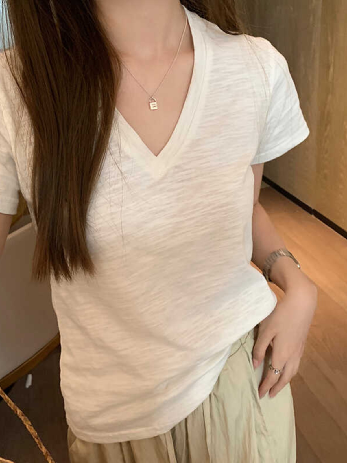 | nameOriginal | Women's v-neck right shoulder summer loose top short-sleeved t-shirt |
