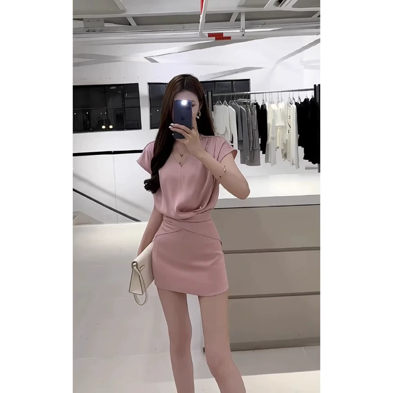 Women’s v-neck short-sleeved two-piece high-end top