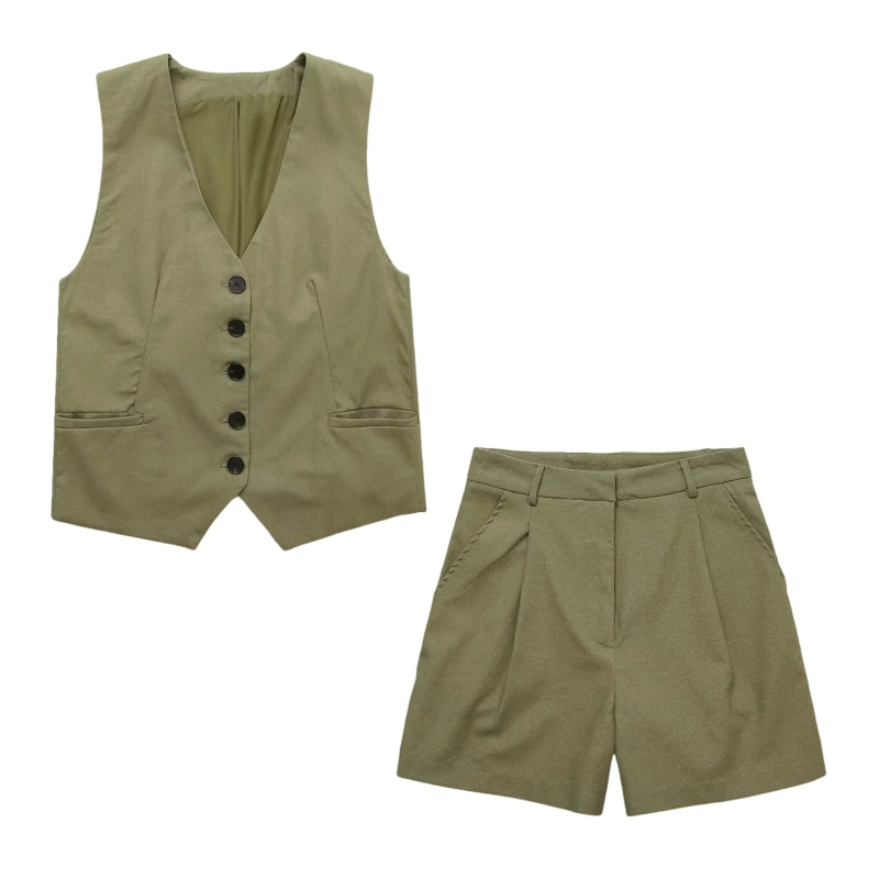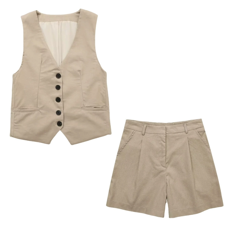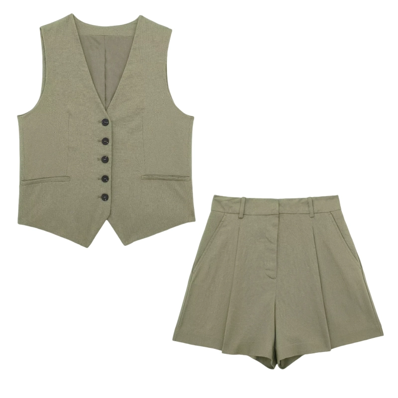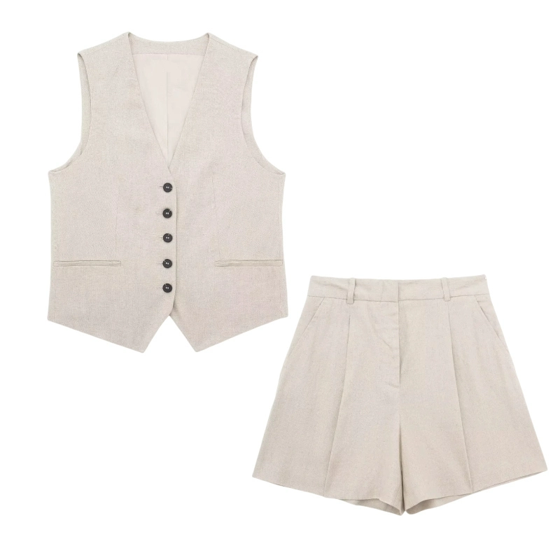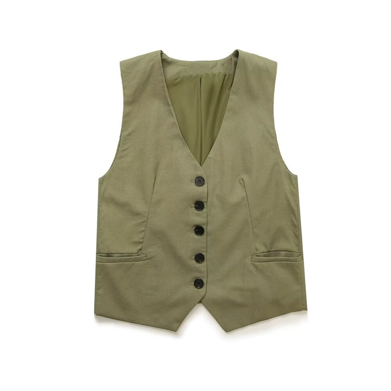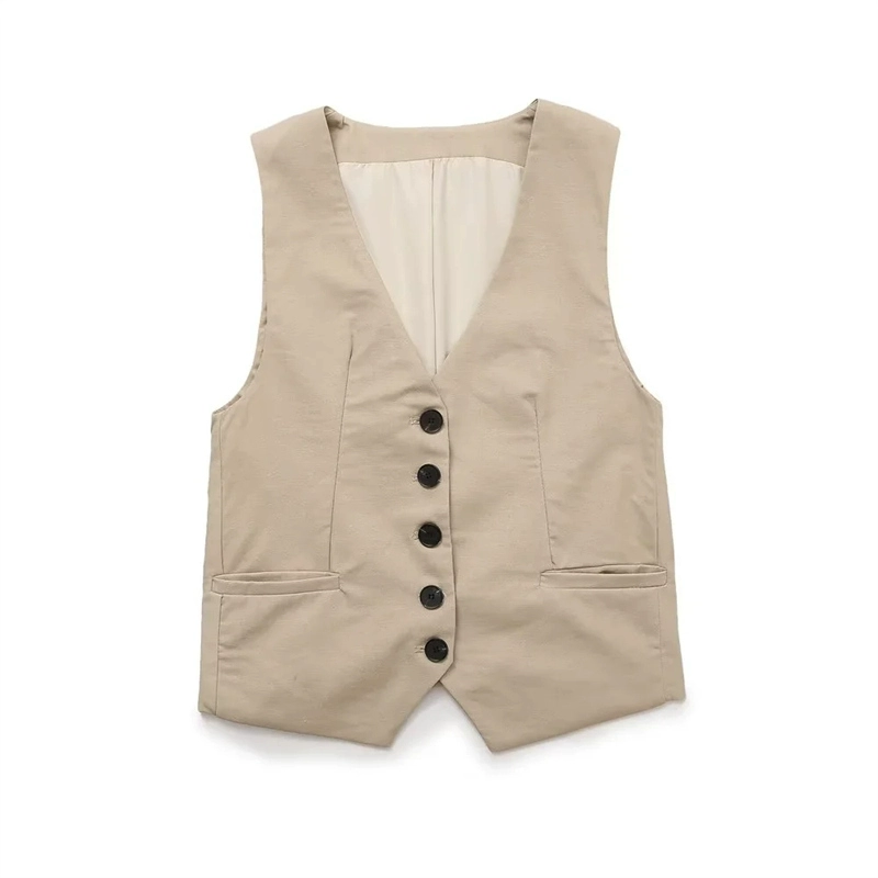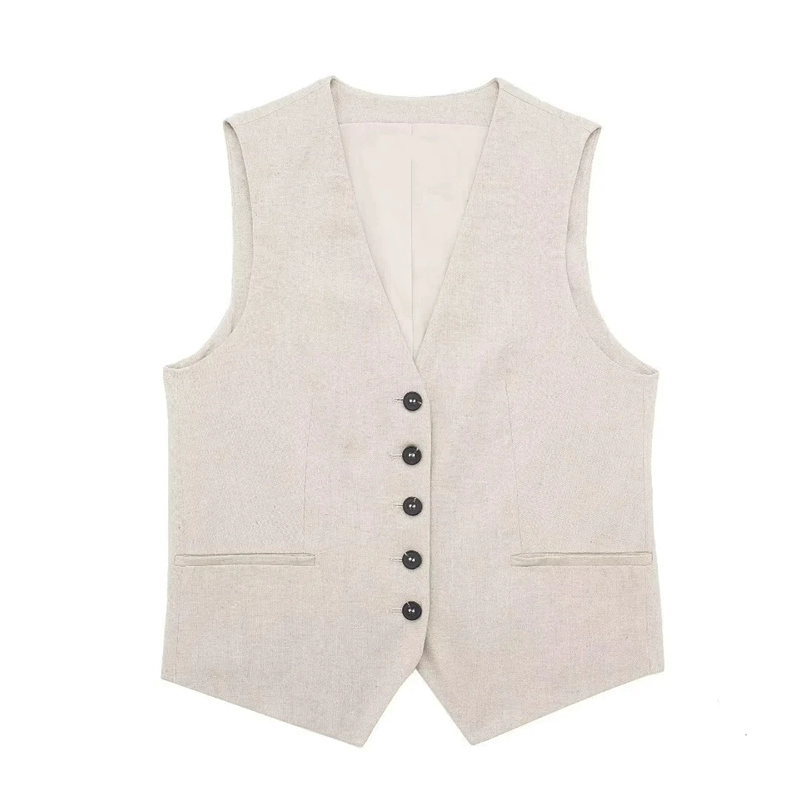 Women’s V-neck Sleeveless Blended Vest Casual Linen