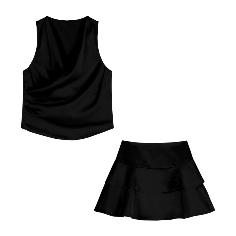 Women’s v-neck sleeveless smart cake two-piece set satin