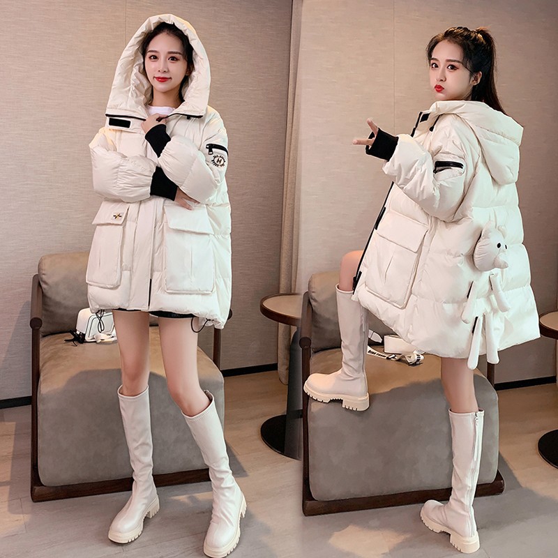 Women’s velvet down jacket 2023 new winter Korean style loose slimming plus size thick coat mid-length