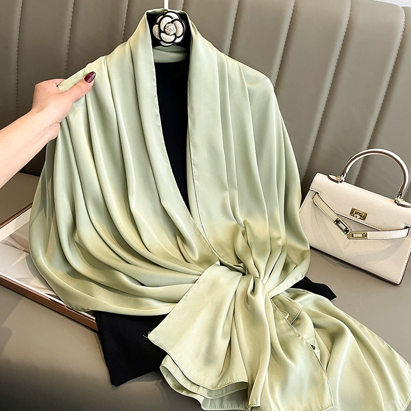 Women’s versatile long beige light green summer shawl silk