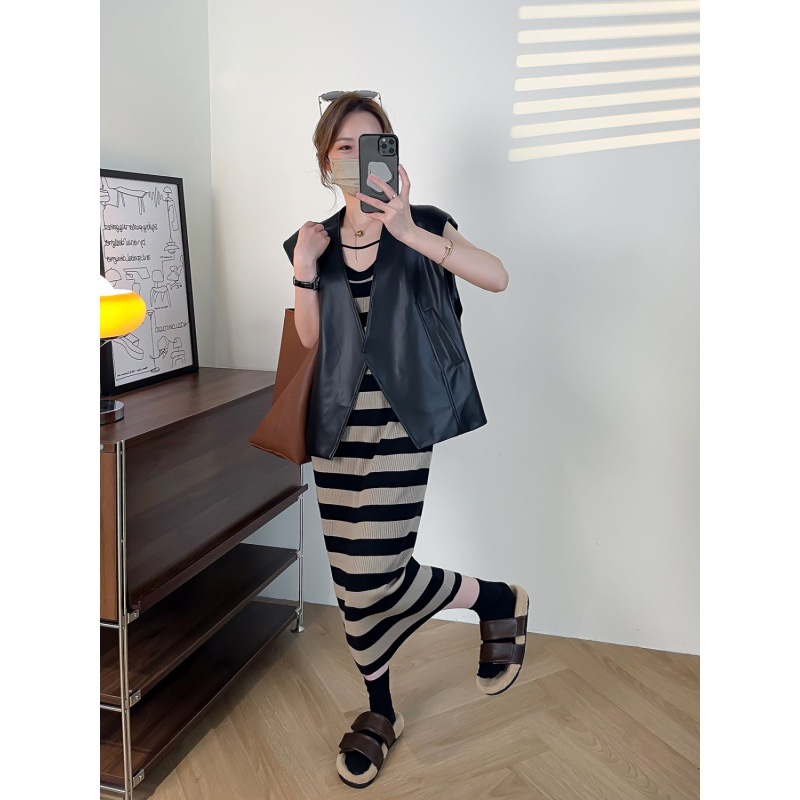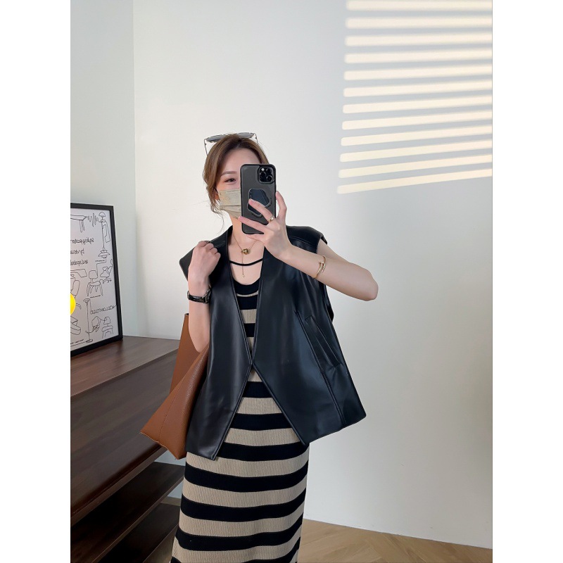 Women's Vest 2024 Autumn New Korean Leather Vest V-neck Loose Fashion Black Stylish Sleeveless Walls Jacket