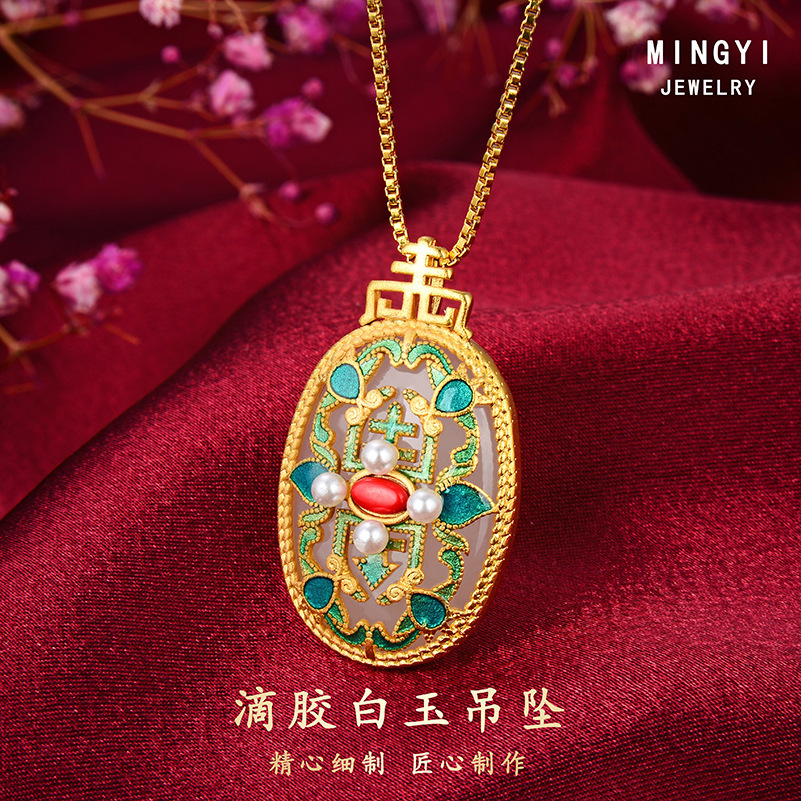 | nameOriginal | Women's Vietnam gold drop oil inlaid jade pendant new special offer ancient vacuum Gold Plated Retro style pendant wholesale |