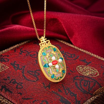 | nameOriginal | Women's Vietnam gold drop oil inlaid jade pendant new special offer ancient vacuum Gold Plated Retro style pendant wholesale |