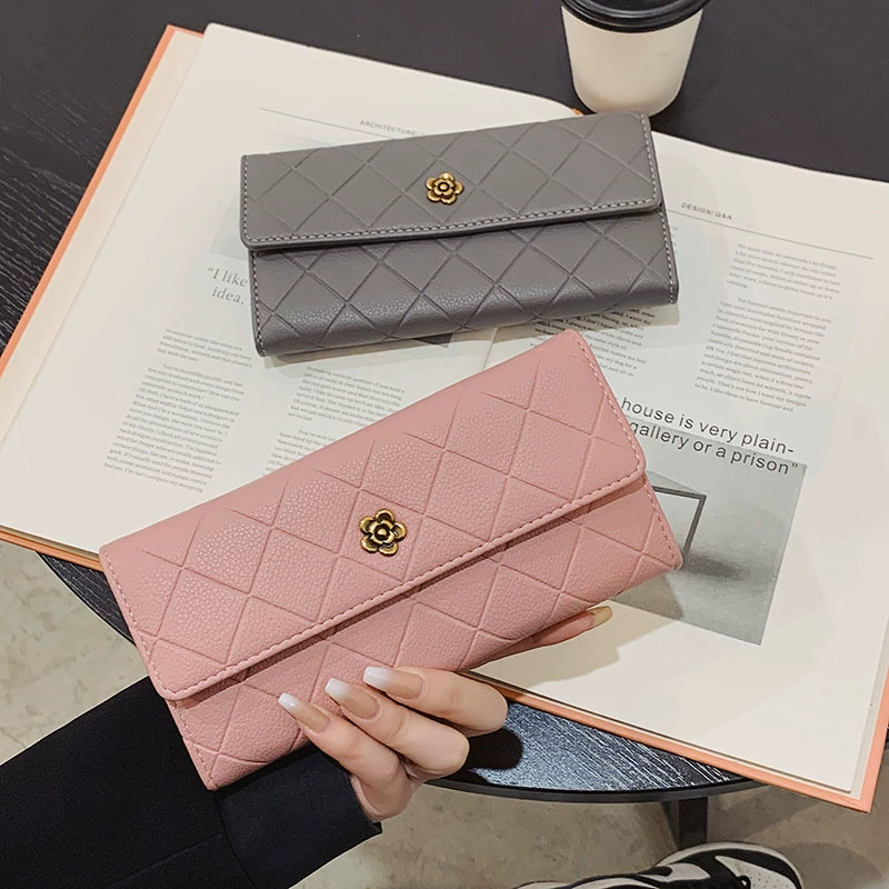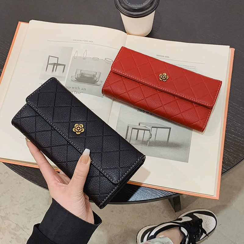 Women's wallet female long multi-function large capacity multi-card slot buckle student camellia card holder hand mobile phone bag