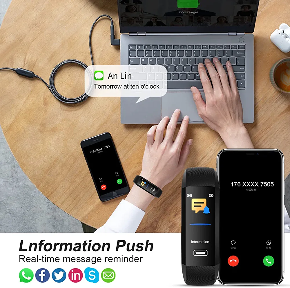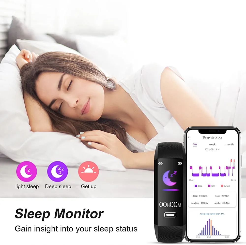 This waterproof fitness tracker, the M8, is designed to track your daily activity, including steps taken, calories burned, exercise distance and time, and pulse rate. With the “READsport” app, you can receive smart notifications for calls, SMS messages, and social media alerts, and female users can monitor their menstrual cycle and receive predictions and reminders. The tracker also features 13 sports modes, real-time heart rate monitoring, and weight management tracking for weight, body fat rate, and muscle mass. With over 100 watch faces to choose from, you can customize your tracker to suit your style. The M8 is easy to charge with its built-in USB plug and comes with a 1-year warranty.