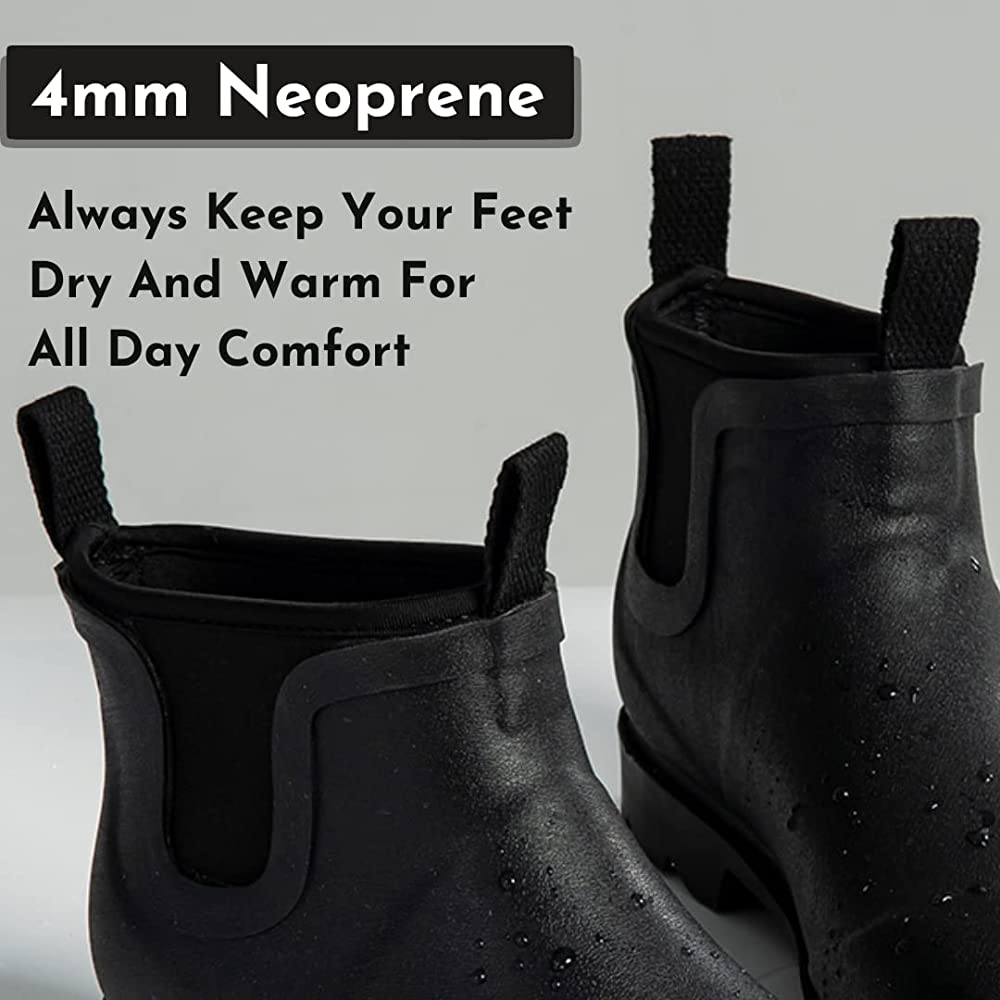 | nameOriginal | JCRainsoul Short Rain Boots for Women, Waterproof Garden Shoes Chelsea Rainboots for Women, 4mm Neoprene Rain Boots, Work, Anti-slip Garden Shoes (Size 5-10) |