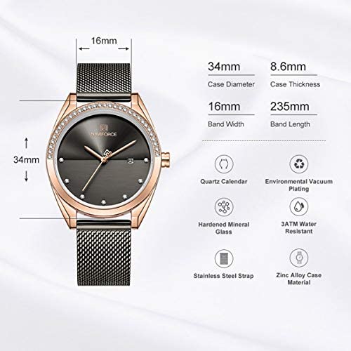 | nameOriginal | Naviforce Analog Stainless Steel Watches for Women with Diamond Date Waterproof Wristwatch |