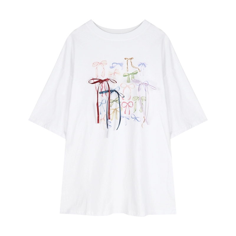 | nameOriginal | Women's White Short Sleeve Loose Round Neck Bow Print |