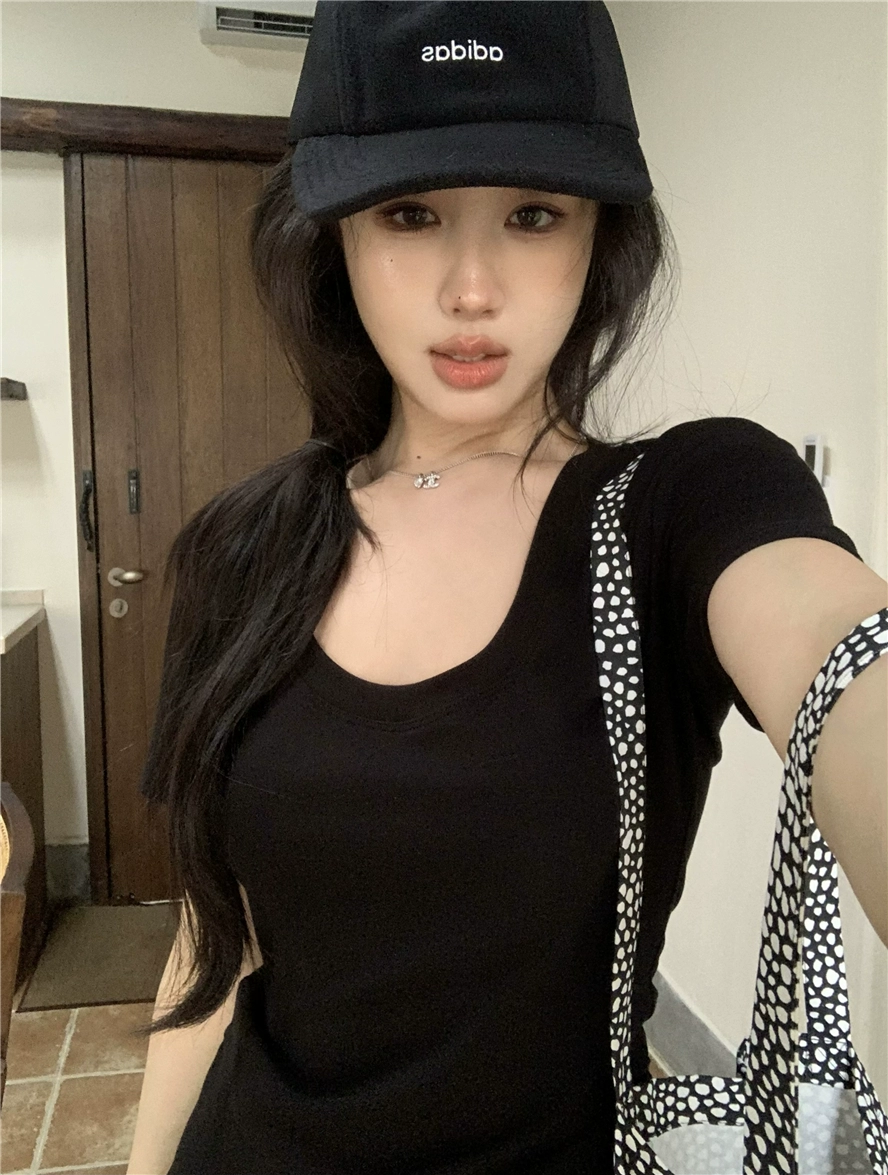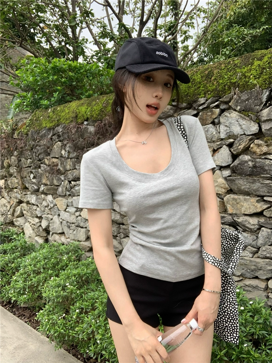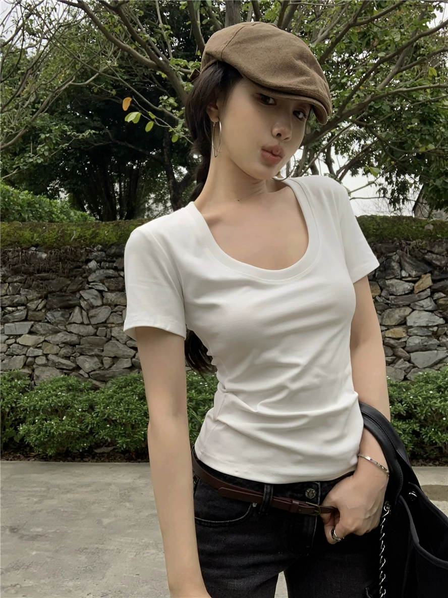 | nameOriginal | Women's White U Neck Short Sleeve Right Shoulder Summer Slim T-Shirt |