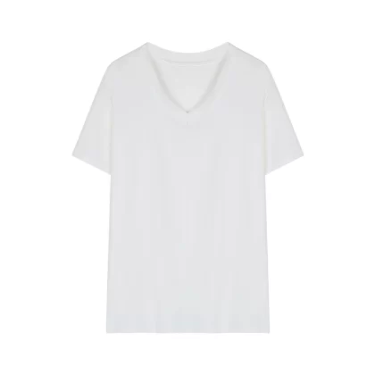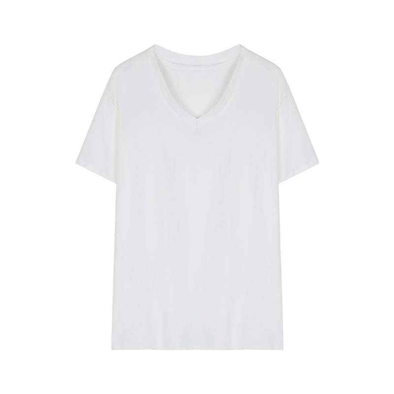 | nameOriginal | Women's white V-neck right shoulder summer loose casual T-shirt |