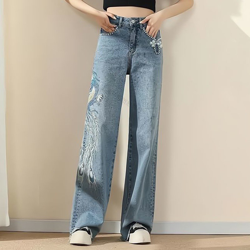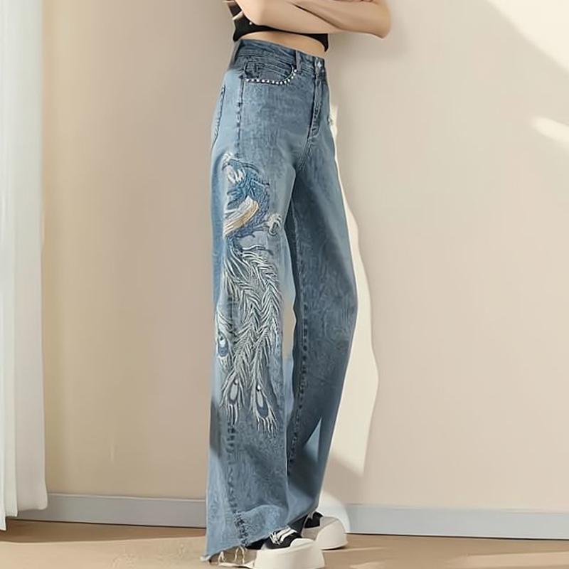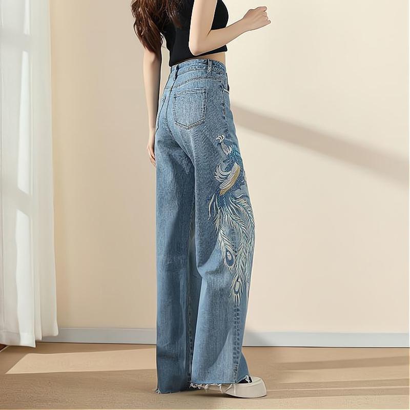 | nameOriginal | Women's wide-leg high waist jeans 2023 Summer new phoenix embroidered straight loose trendy slimming flared drape |