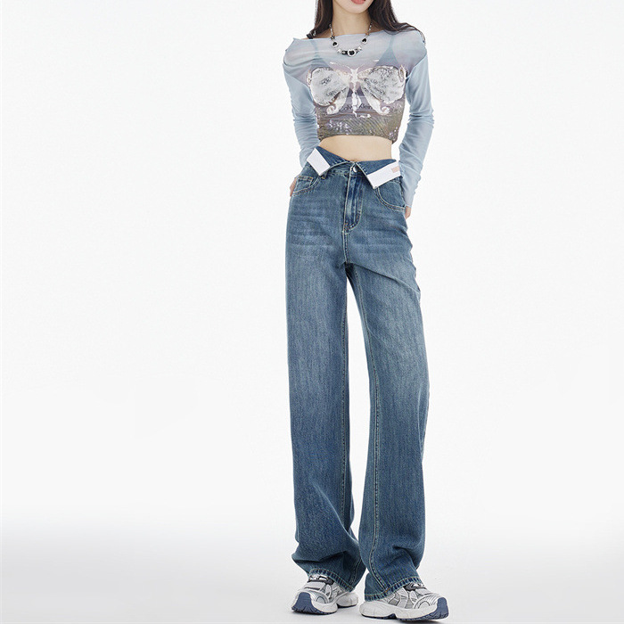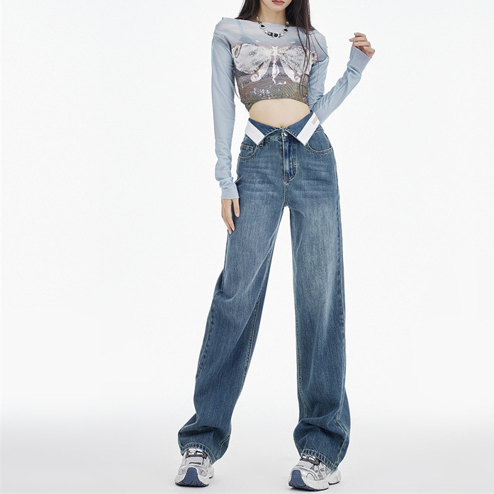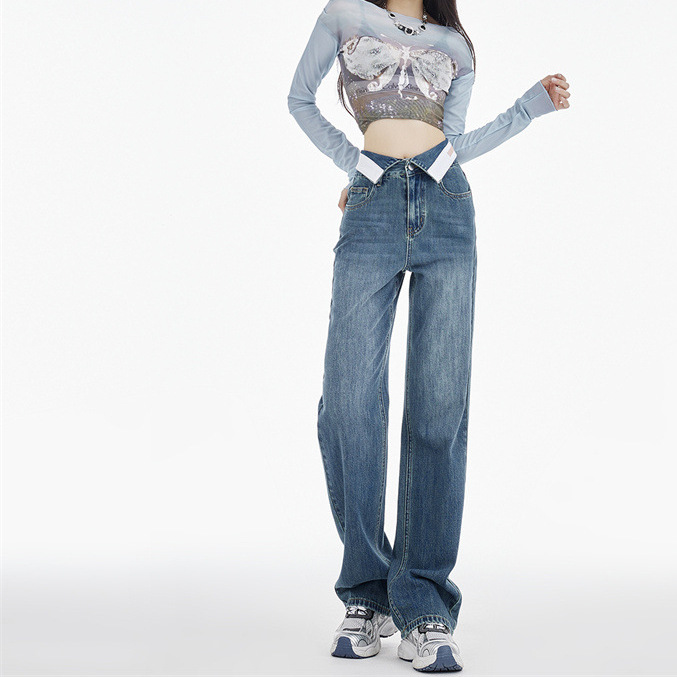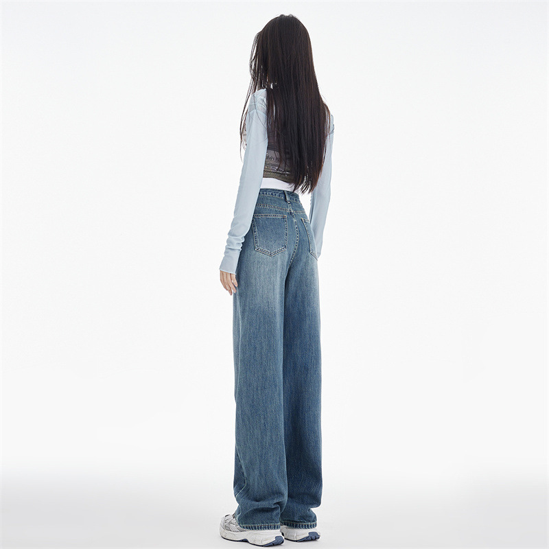 Women's wide-leg jeans summer slimming versatile 2024 New design sense Autumn pear-shaped loose high waist straight pants