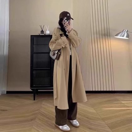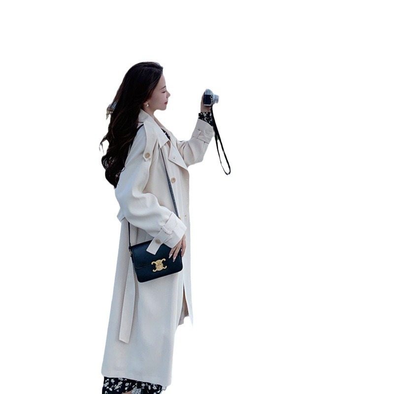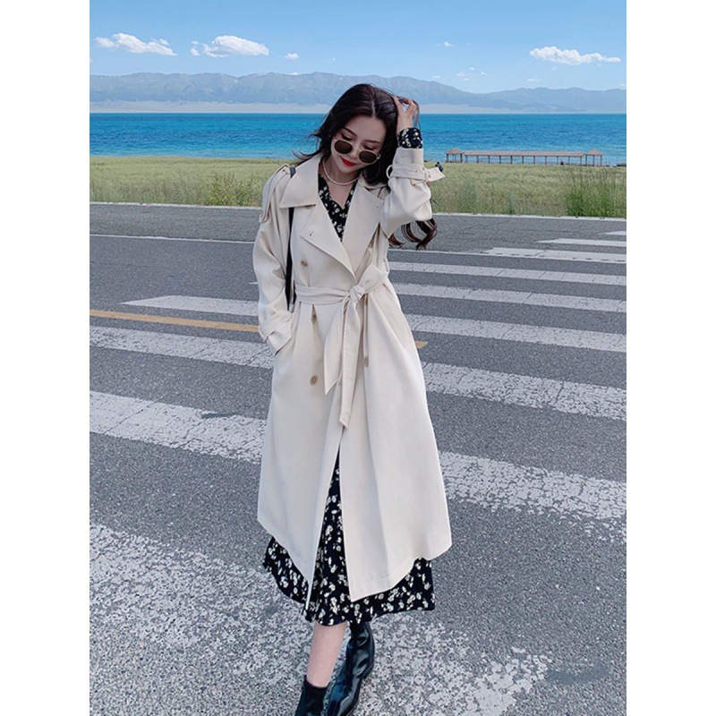 nameOriginal | Women's Windbreaker Mid-length Short Women's Waisted Double-breasted Korean-style Elegant Beige British-style Casual Jacket |