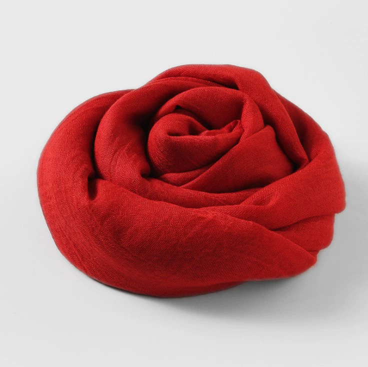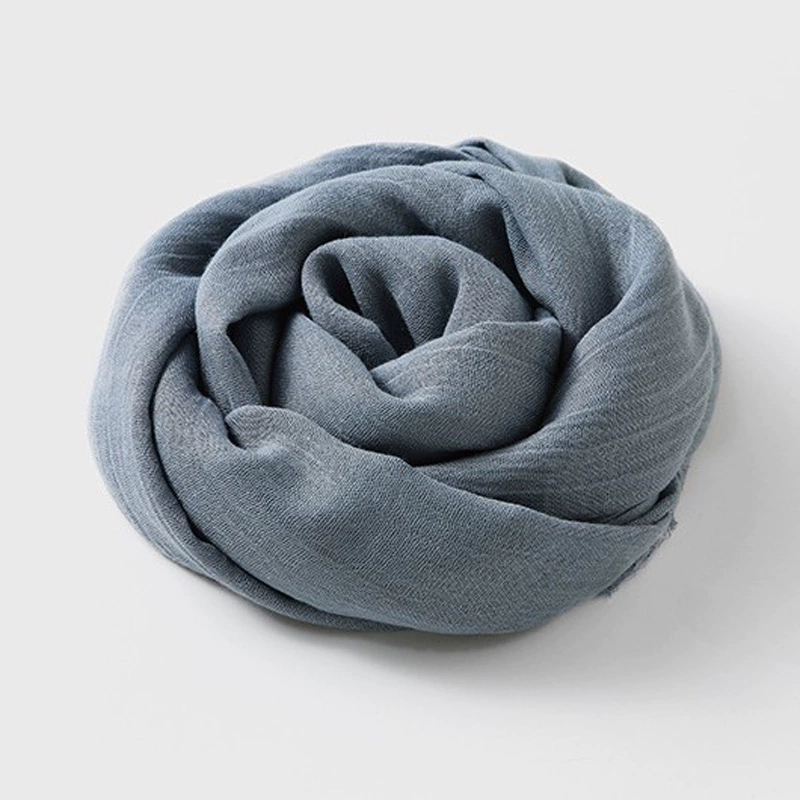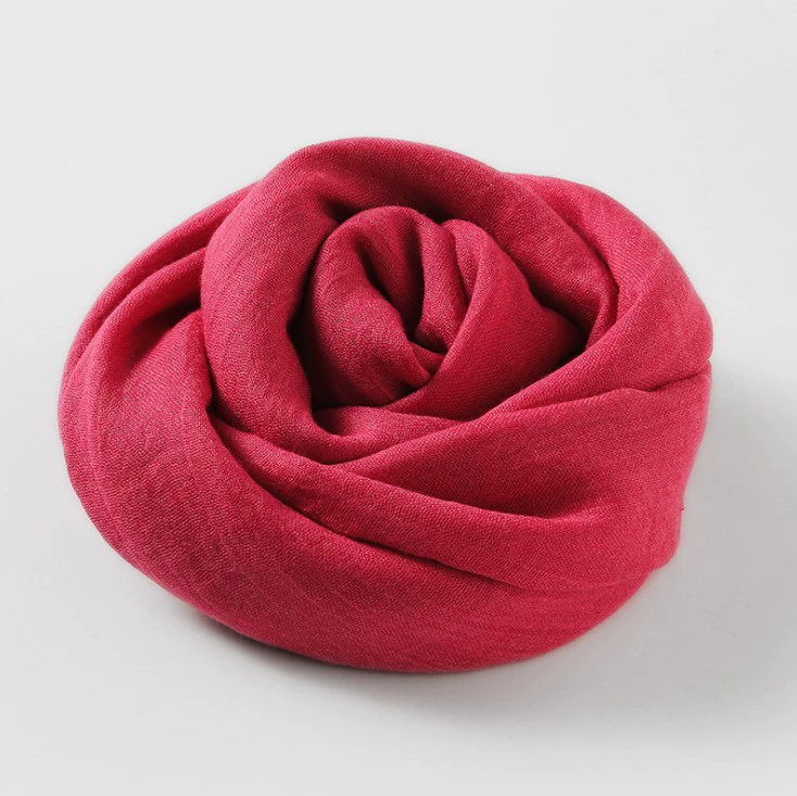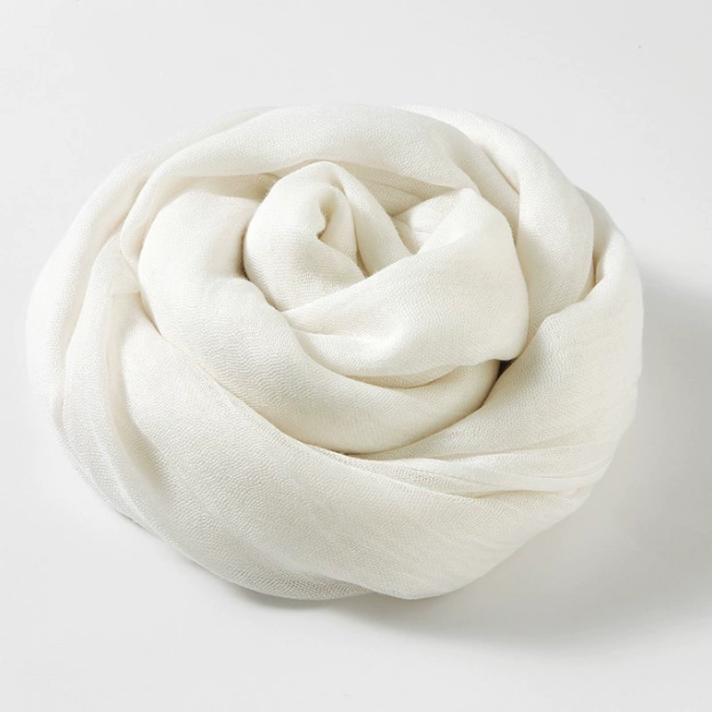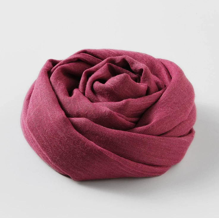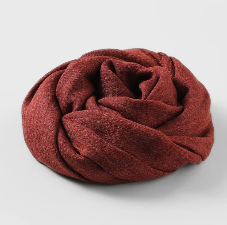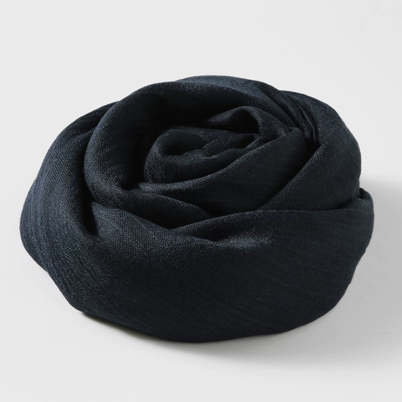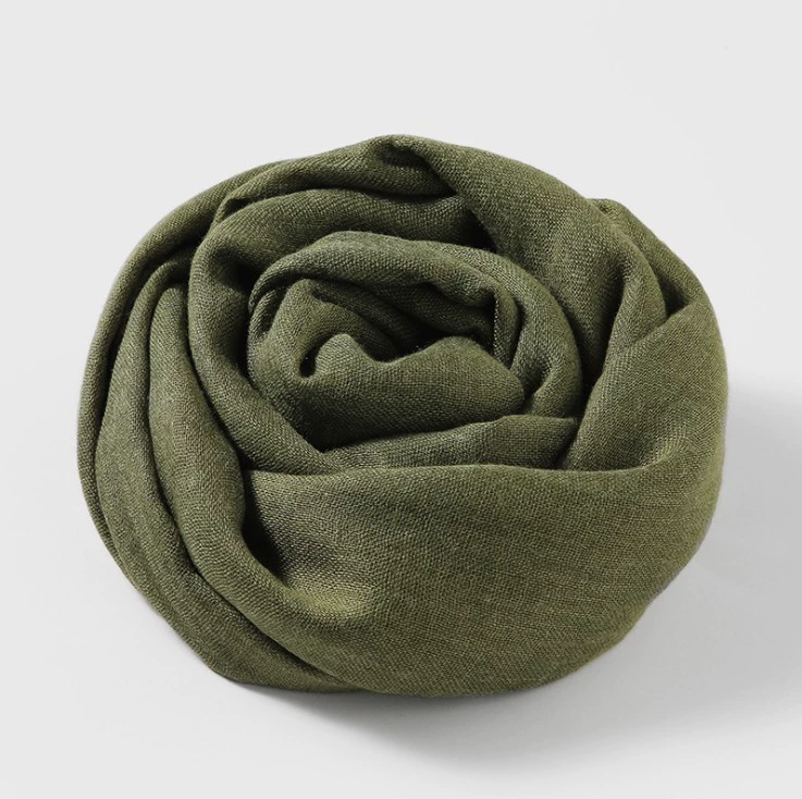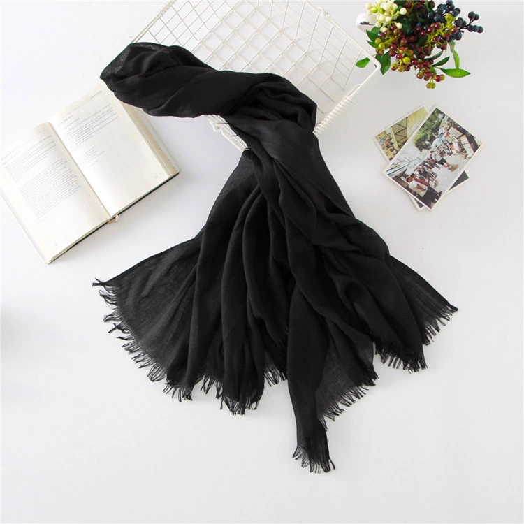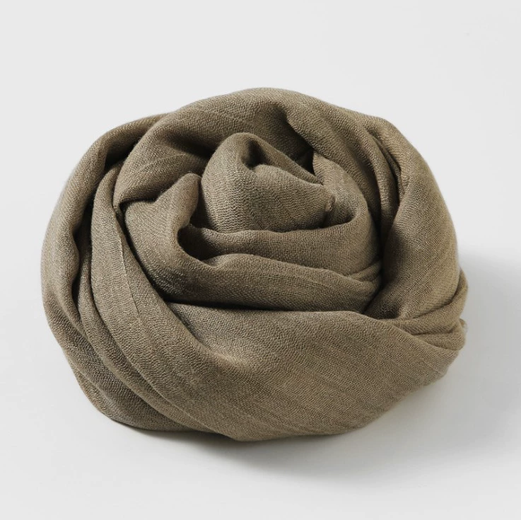 Women's windproof texture beige tassel artistic cotton and linen scarf