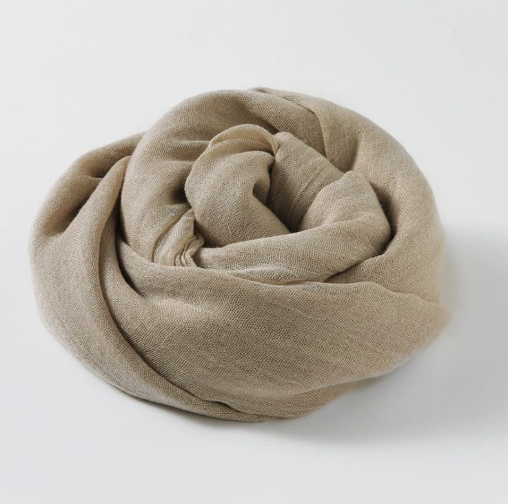 Women’s windproof texture beige tassel artistic cotton and linen scarf