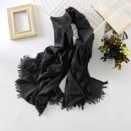Women’s windproof texture beige tassel artistic cotton and linen scarf
