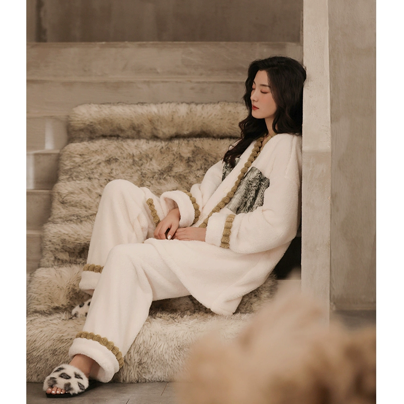 | nameOriginal | Women's winter coral velvet pajamas can be worn outside, thickened and velvet, 2024 new style printed pocket home clothes two-piece set |