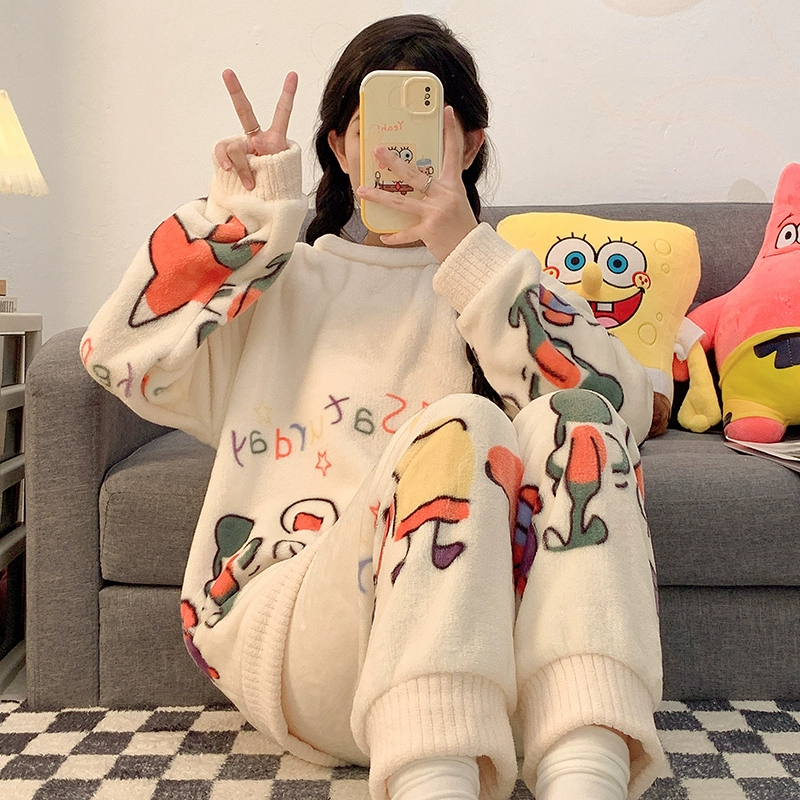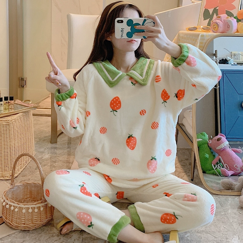 | nameOriginal | Women's winter thickened flannel home clothes, spring and autumn pajamas |