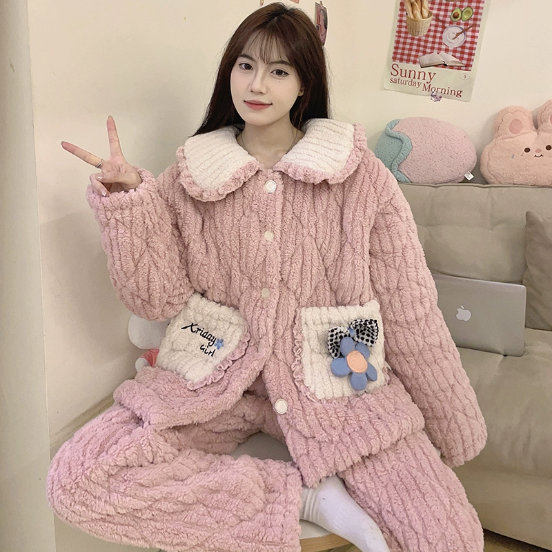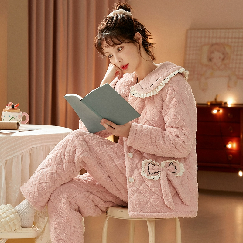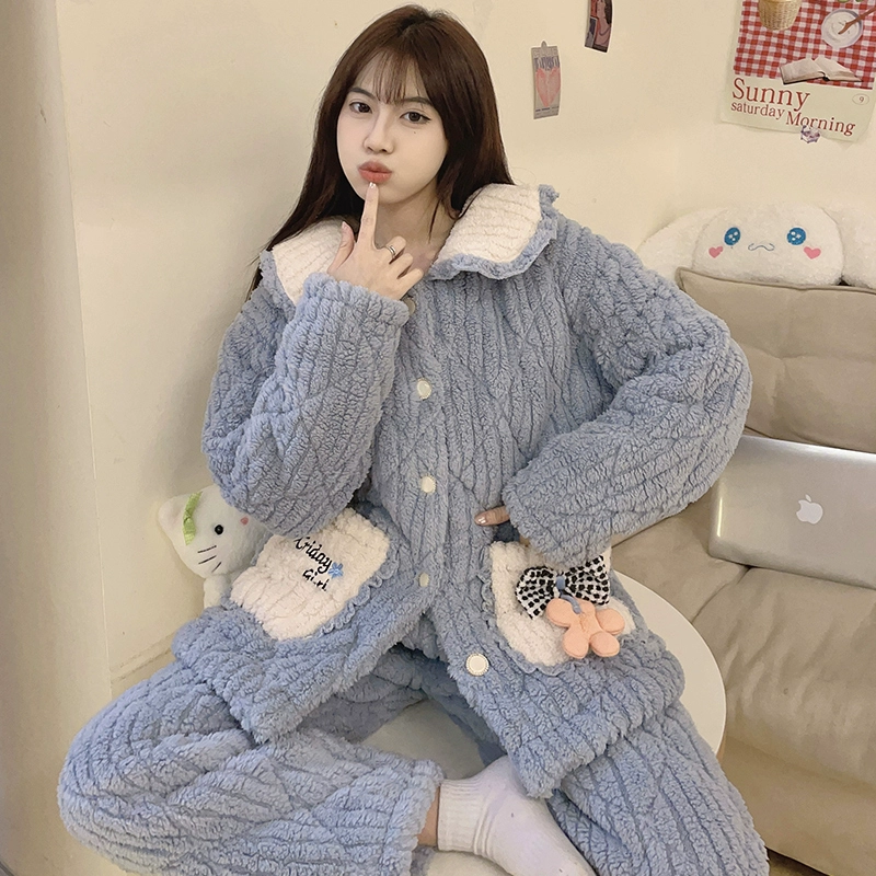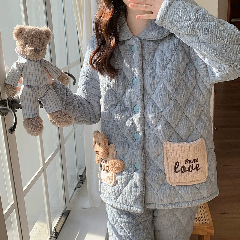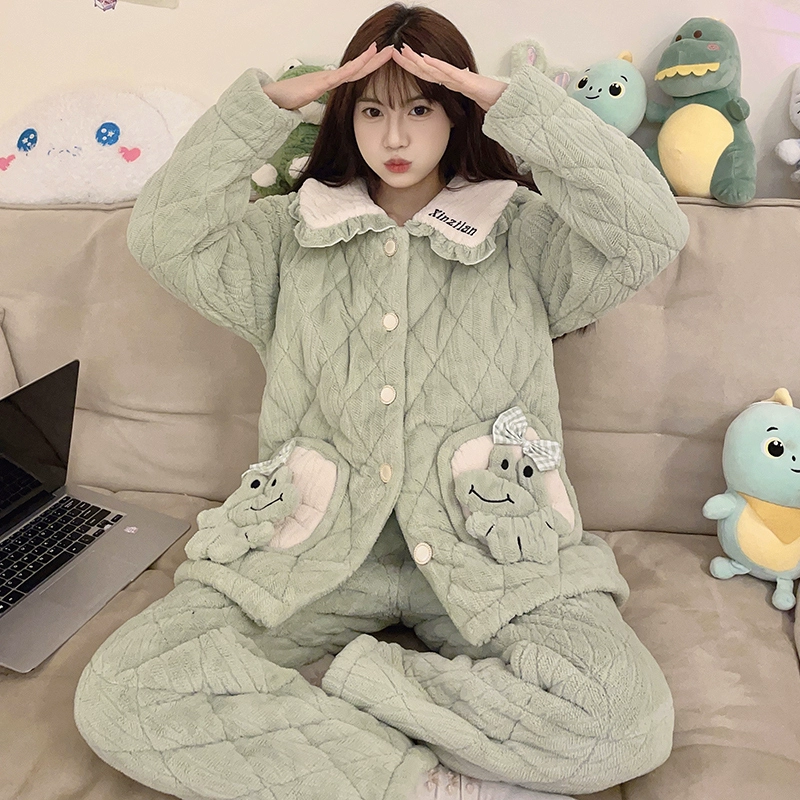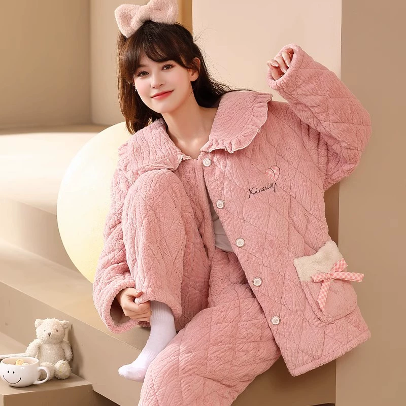 | nameOriginal | Women's winter three-layer quilted cute plus fleece warm pajamas |