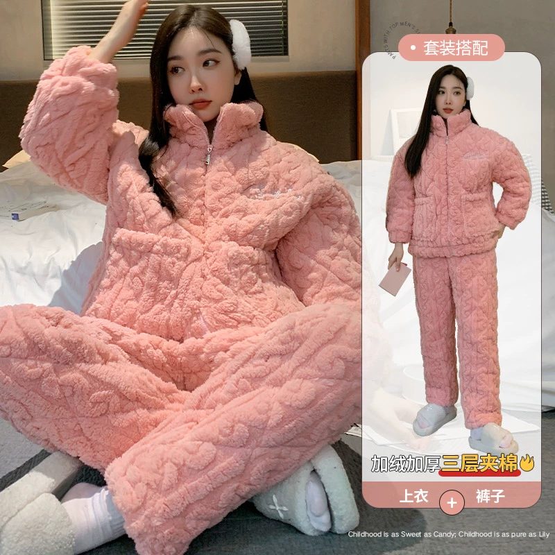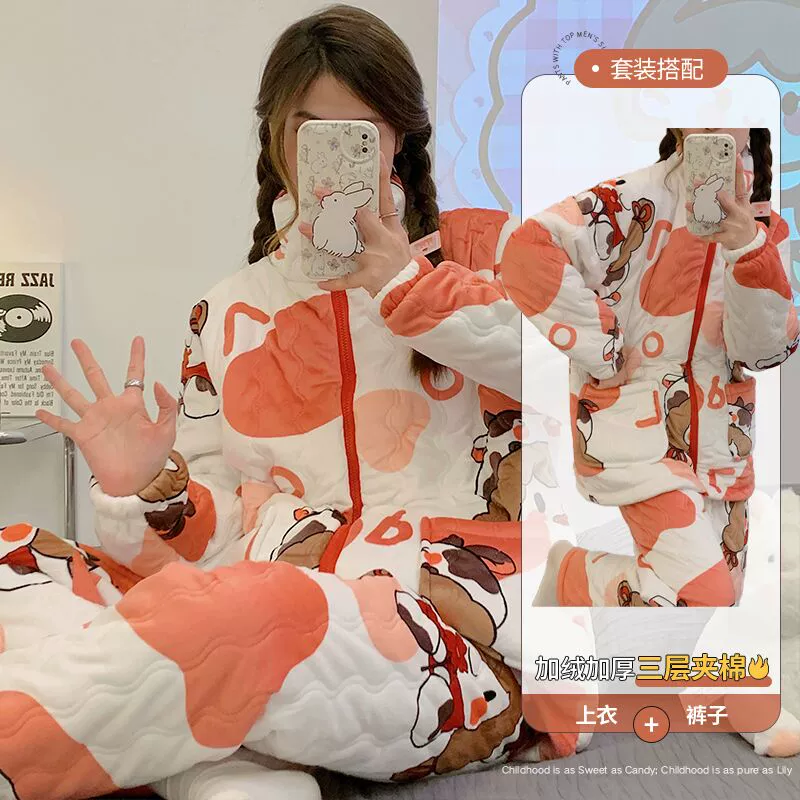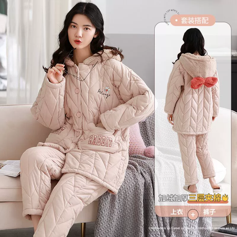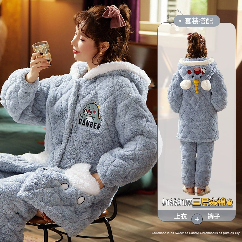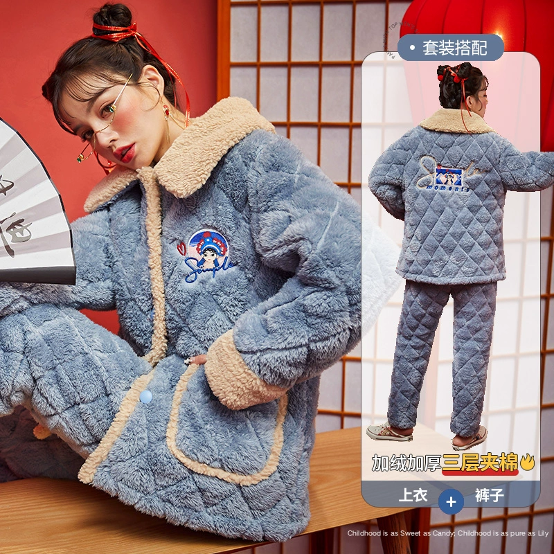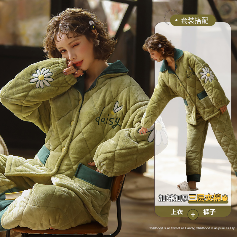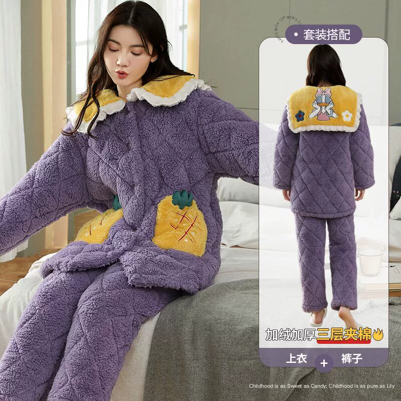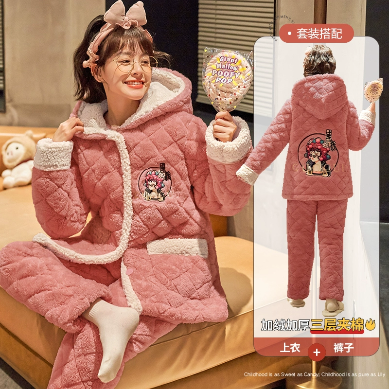 Women’s winter plus three layers of cotton cotton super thick pajamas