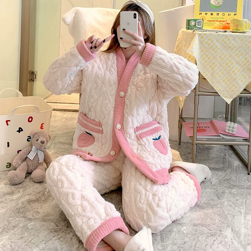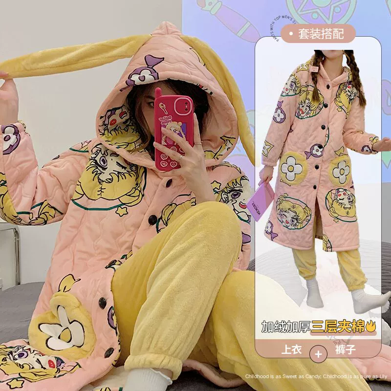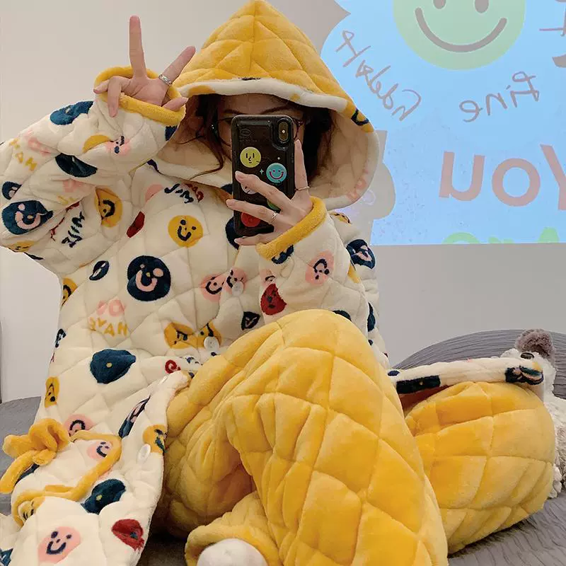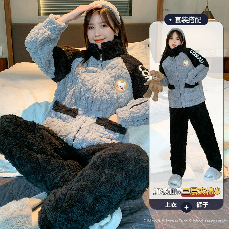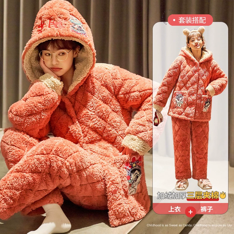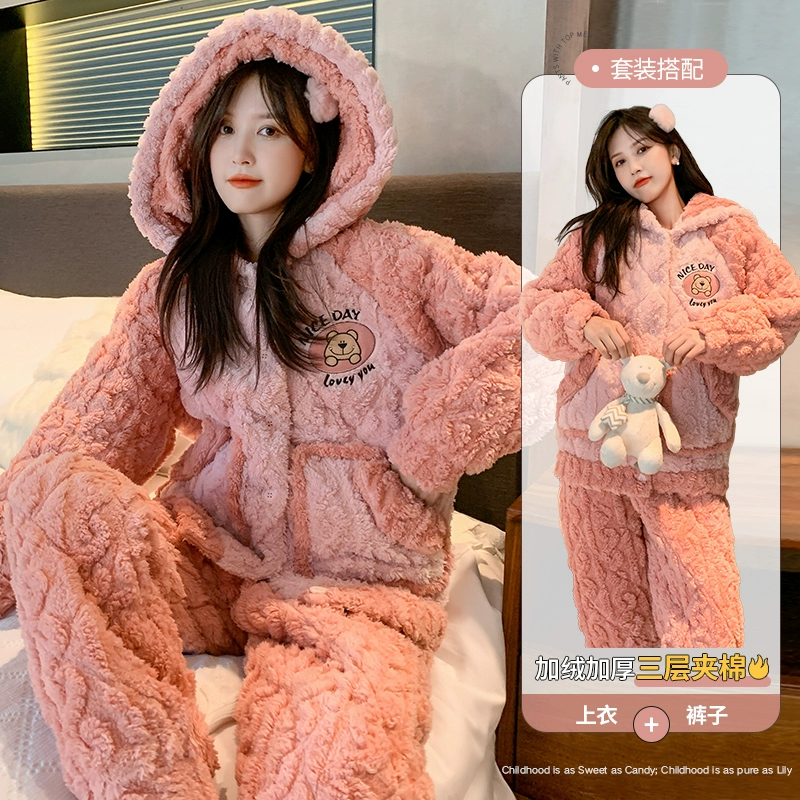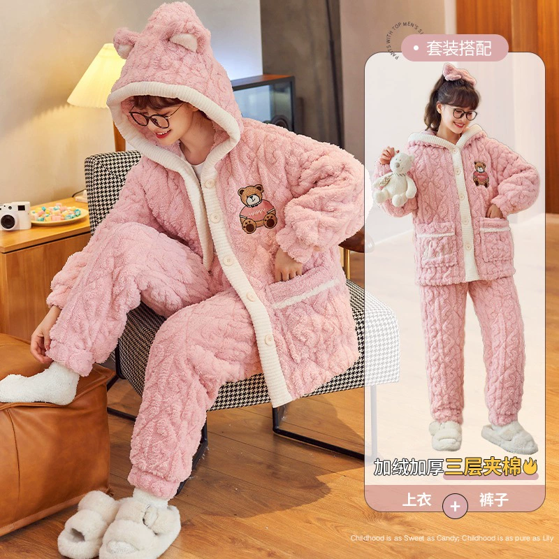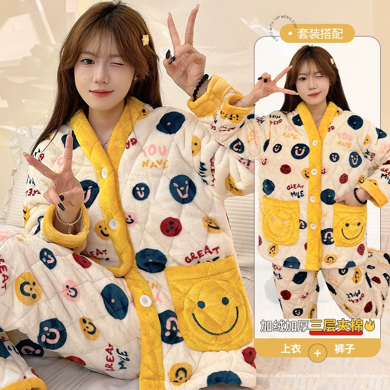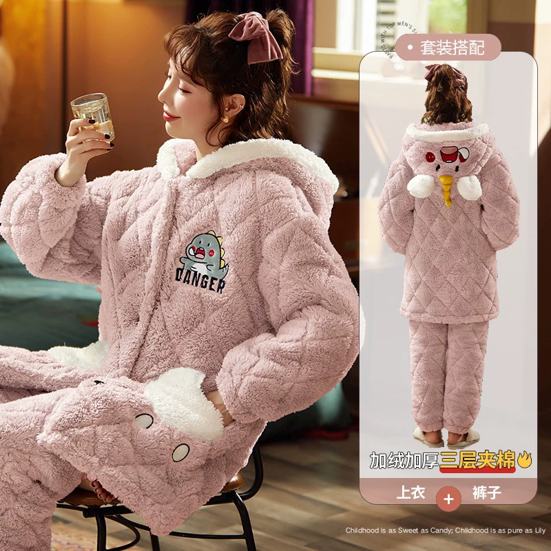 Women’s winter plus three layers of cotton cotton super thick pajamas
