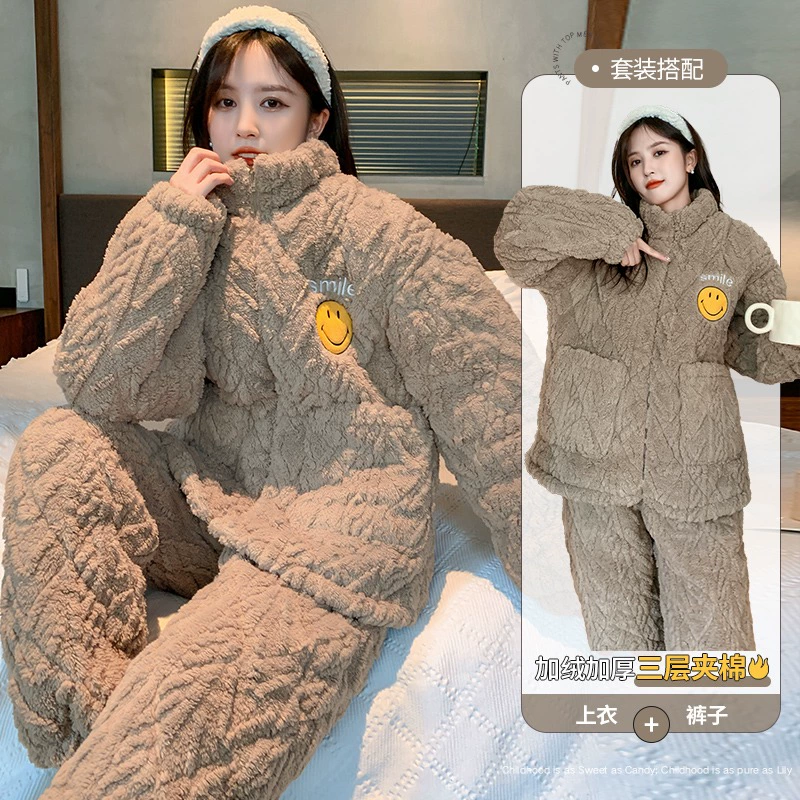 Women's winter velvet three-layer quilted ultra-thick pajamas